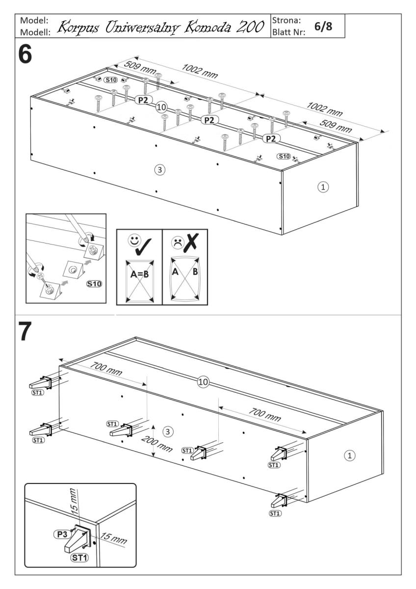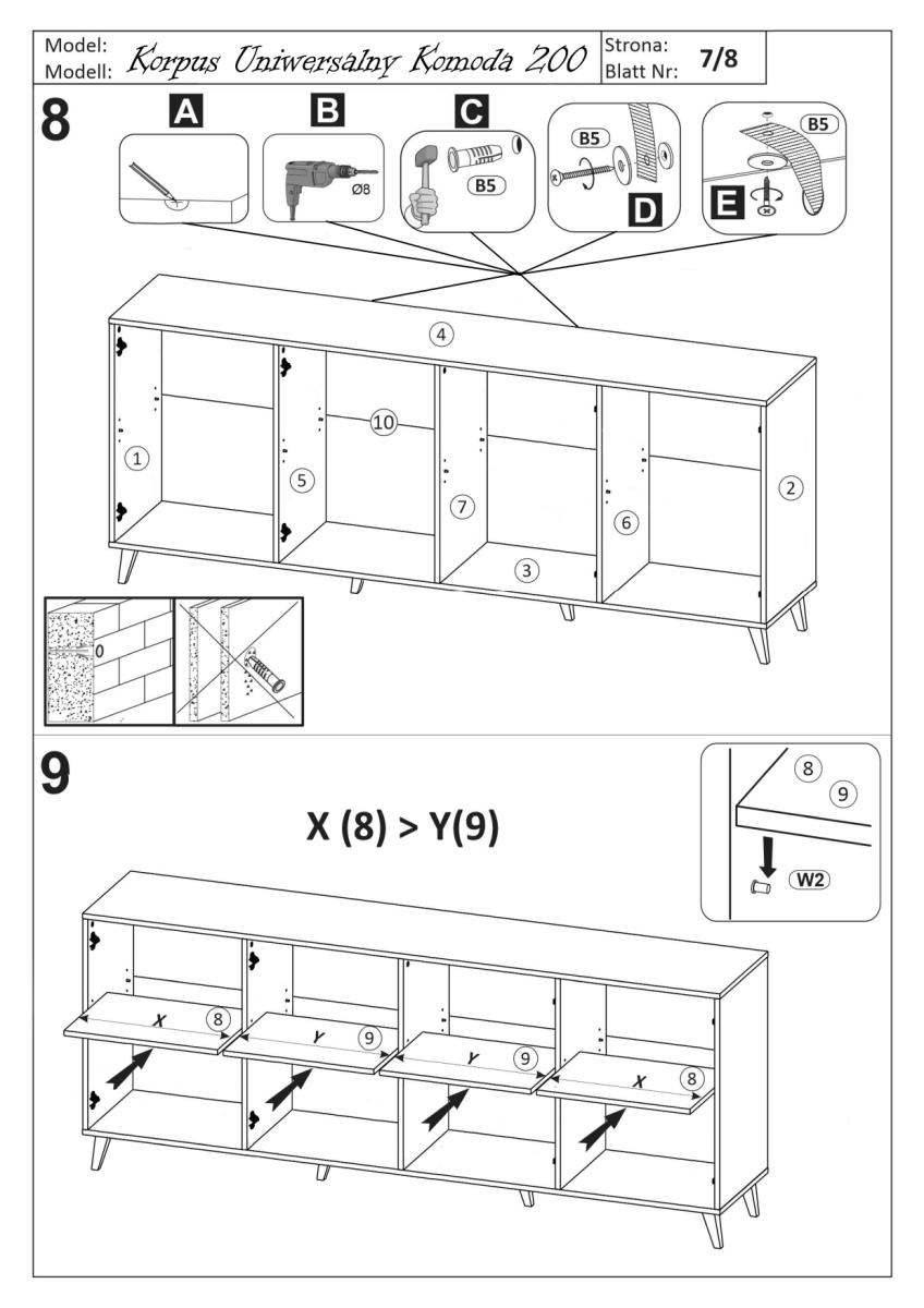 Bei einer Breite von 200 cm, einer Tiefe von 42 cm und einer Höhe von 82 cm bietet die Kommode oben eine große Nutzfläche, die für dekorative Elemente, eine Lampe oder einen Spiegel genutzt werden kann. Das Innere ist für die optimale Aufbewahrung von Kleidung, Dokumenten oder anderen Haushaltsgegenständen konzipiert. Mit einem Gesamtgewicht von 67 kg und einem Volumen von 141,12 dm³ ist das Produkt robust genug, um die Belastungen des täglichen Gebrauchs zu tragen, bleibt aber dennoch geeignet für empfindlichere Bodenbeläge.