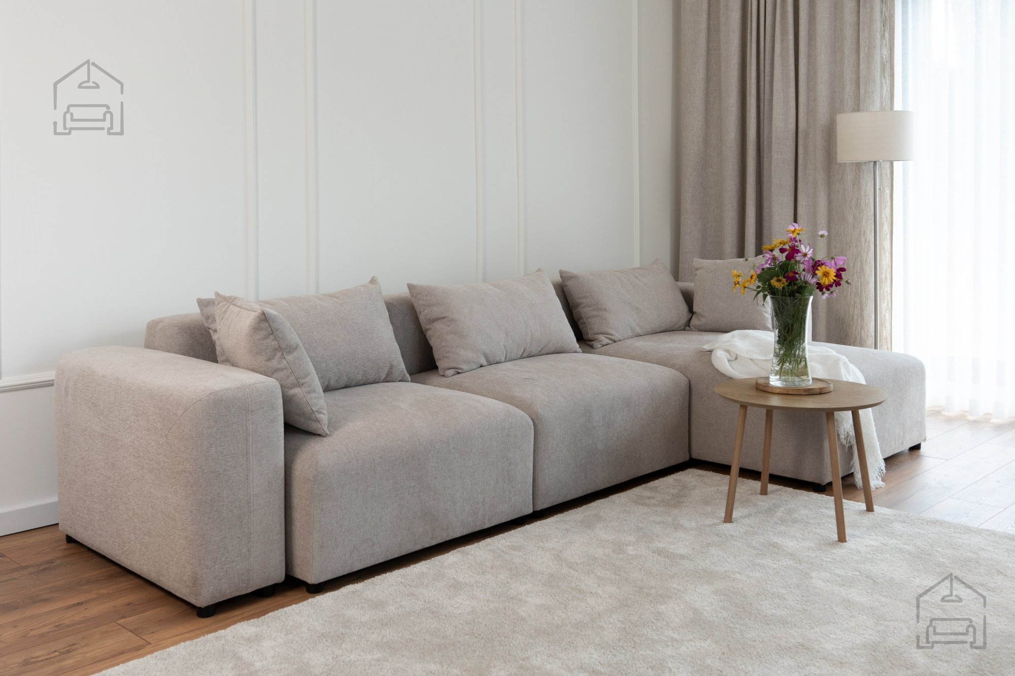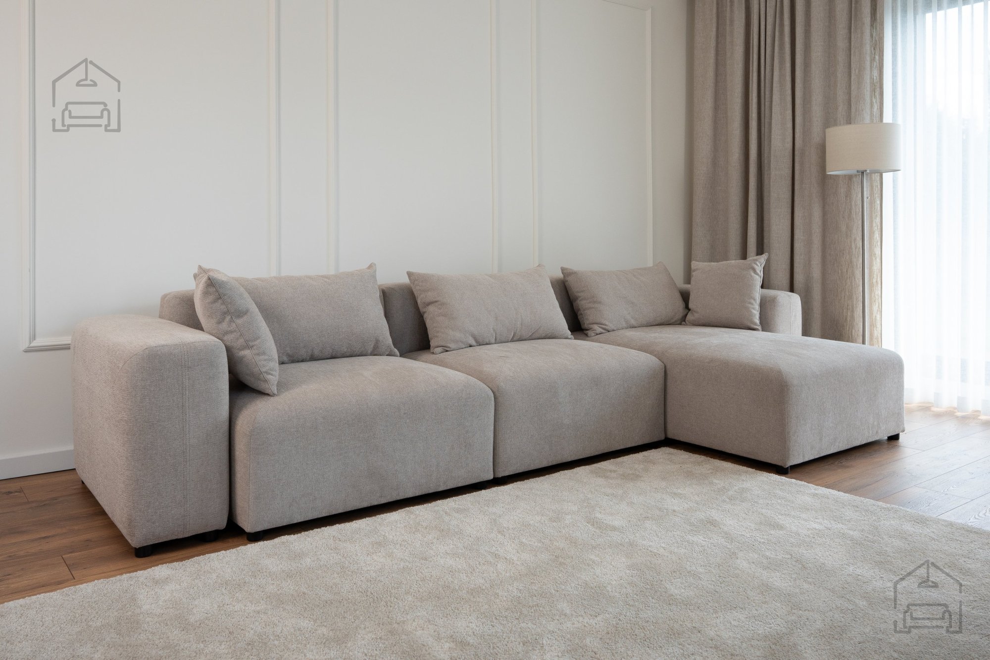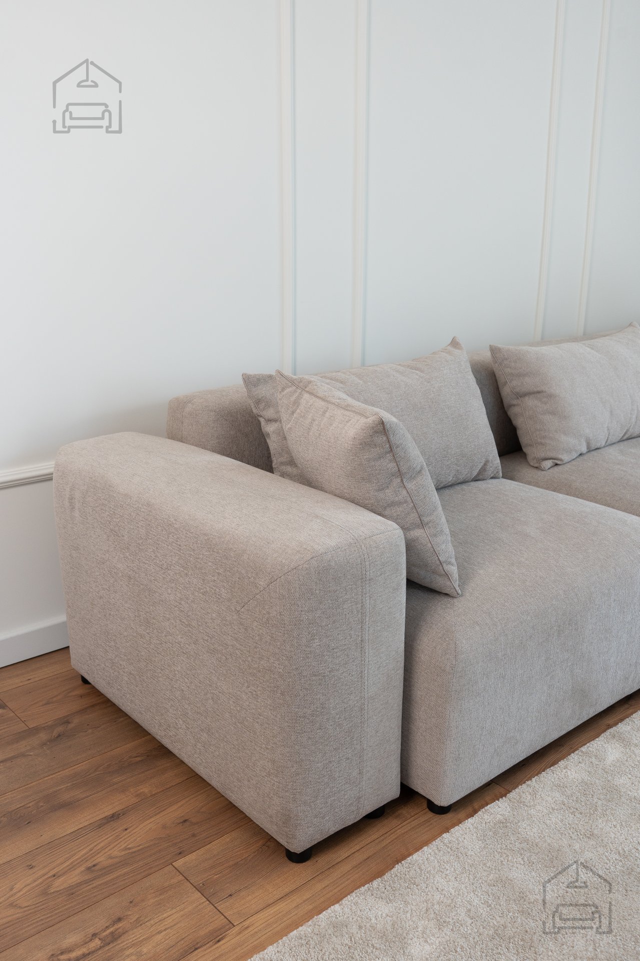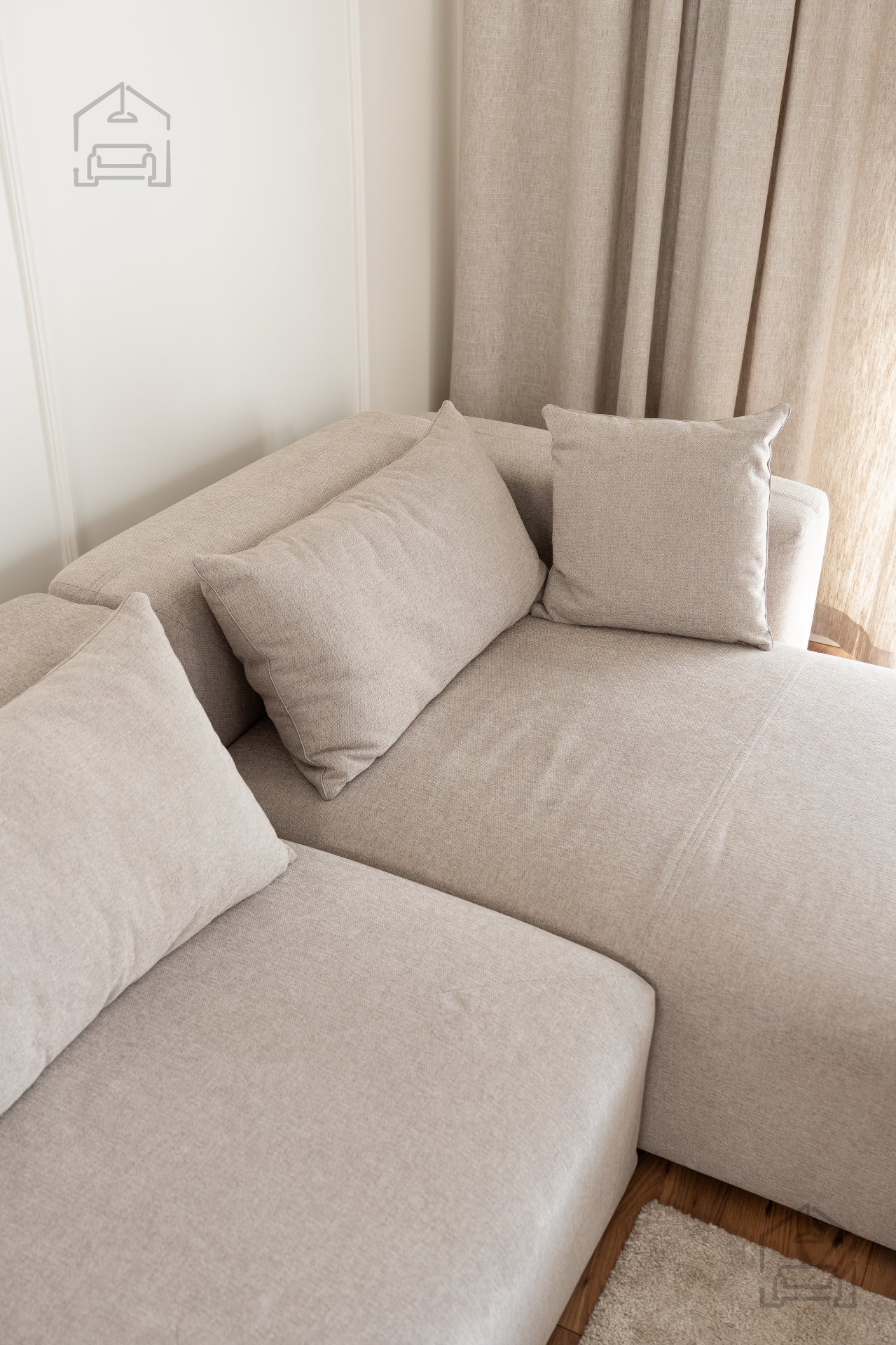 Das Ecksofa Modular mit Kissen – PKMebel vereint Ästhetik, Qualität und Komfort in einem Produkt. Seine moderne Form, die durchdachte Konstruktion und der weiche Stoff schaffen einen angenehmen Raum zum Ausruhen, Zusammensein oder Lesen. Wählen Sie die Variante, die am besten zu Ihrem Zuhause passt, und genießen Sie den Komfort, den hochwertige europäische Herstellung bietet.