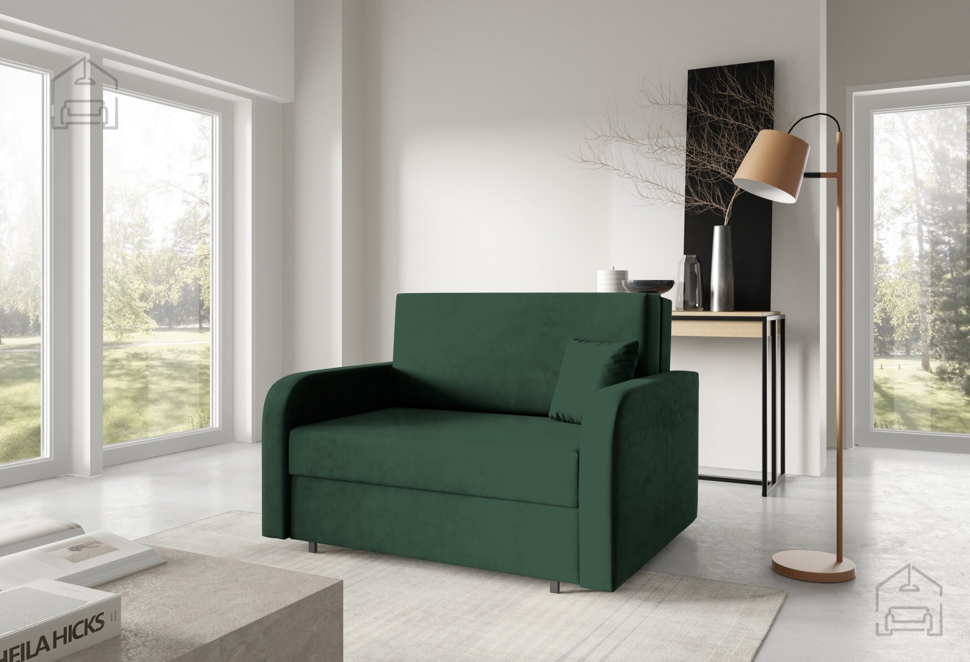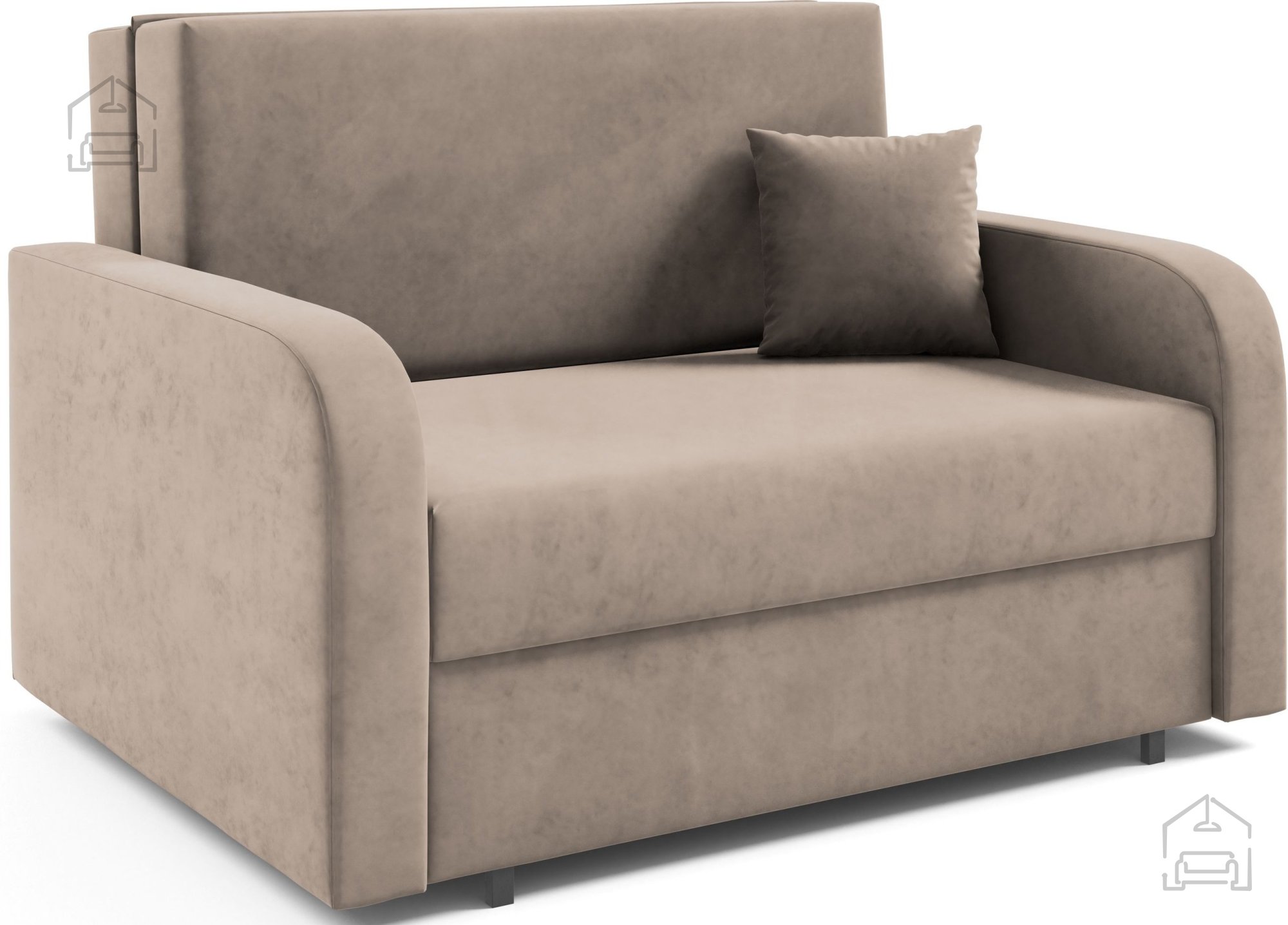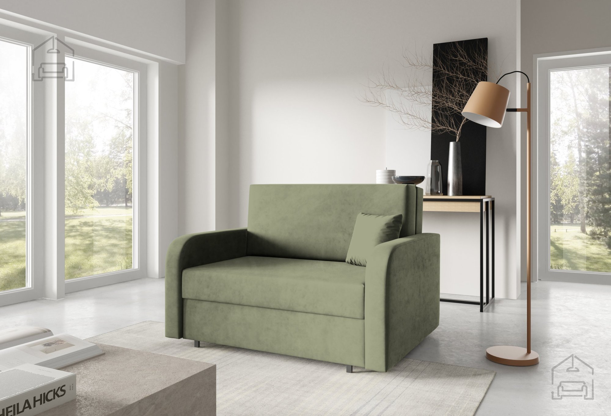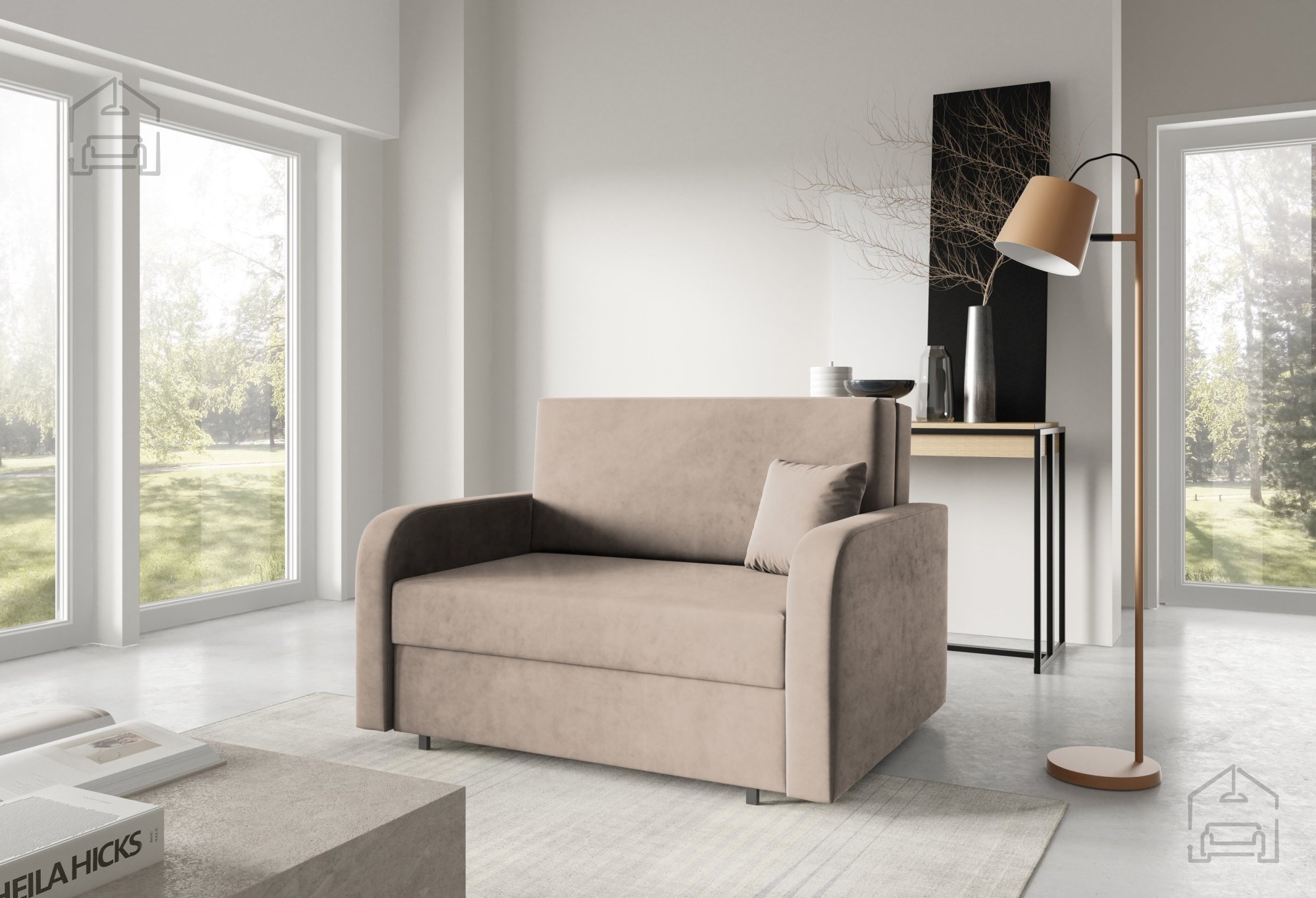 Der Stil des Modells Feroni II wird als kindlich beschrieben, was bedeutet, dass es sich hervorragend für Jugend- oder Kinderzimmer eignet. Seine einfache, aber elegante Form ermöglicht jedoch auch den Einsatz in anderen Umgebungen – als Zusatzsofa im Wohnzimmer, Arbeitszimmer oder Ferienhaus. Die Farboptionen des Stoffes ermöglichen die Anpassung an verschiedene Interieurs, sodass sich das Sofa elegant in jeden Raum einfügt.
