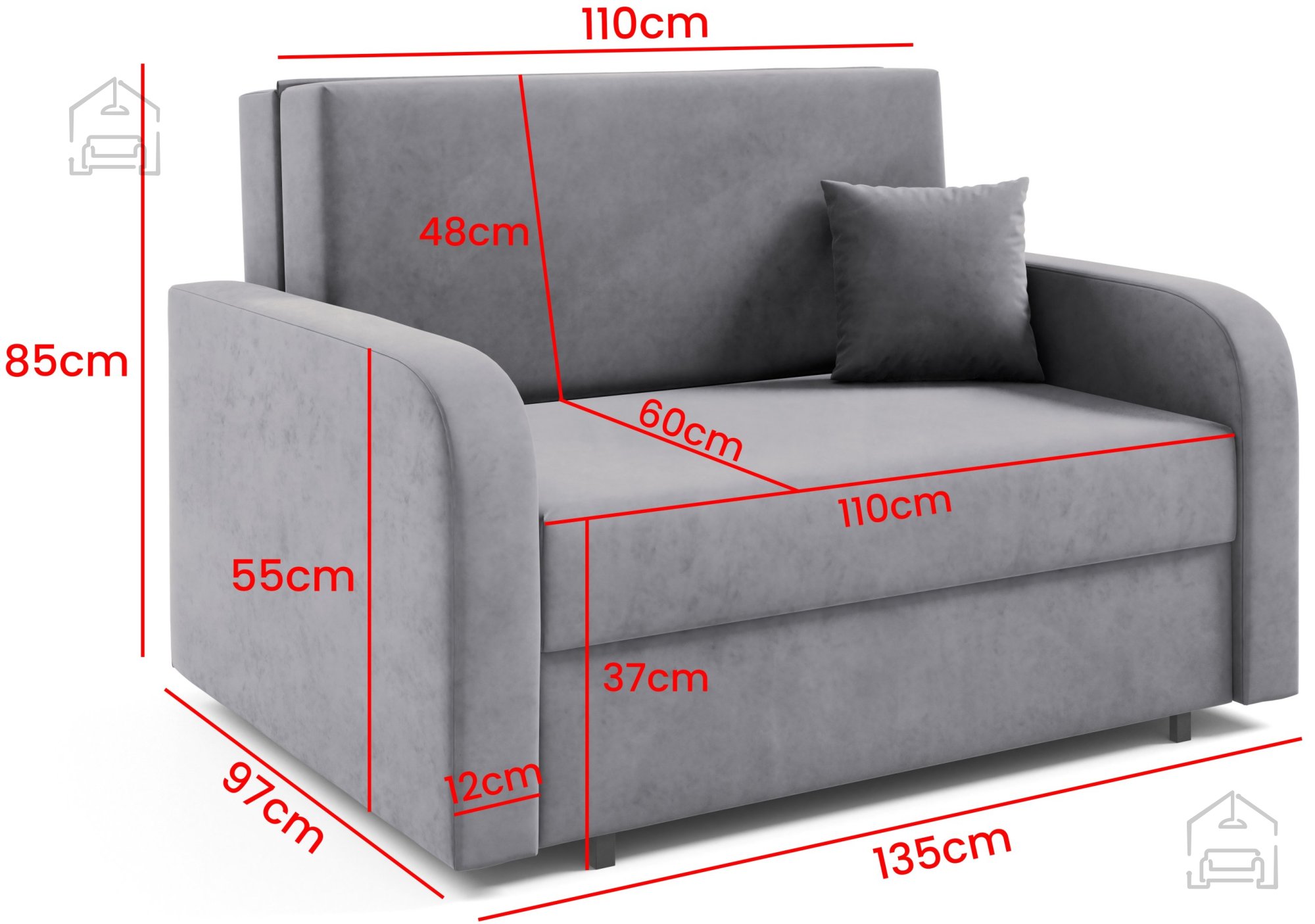 Das Schlafsofa Feroni II vereint Praktikabilität, Komfort und kindliche Verspieltheit in einem Möbelstück. Mit seinem kompakten Design (135x97x85 cm) ist es ideal für kleinere Räume, Jugendzimmer oder Garçonnièren, wo jeder Zentimeter zählt. Es wird in der Fabrik Sitzgarnituren PKMebel in Polen hergestellt, was geprüfte Qualität und präzise Verarbeitung garantiert. Die ausgewählten Materialien und durchdachten Funktionen ermöglichen es, dass sich das Sofa leicht in ein bequemes Bett verwandelt und zusätzlichen Stauraum für Bettwäsche bietet.