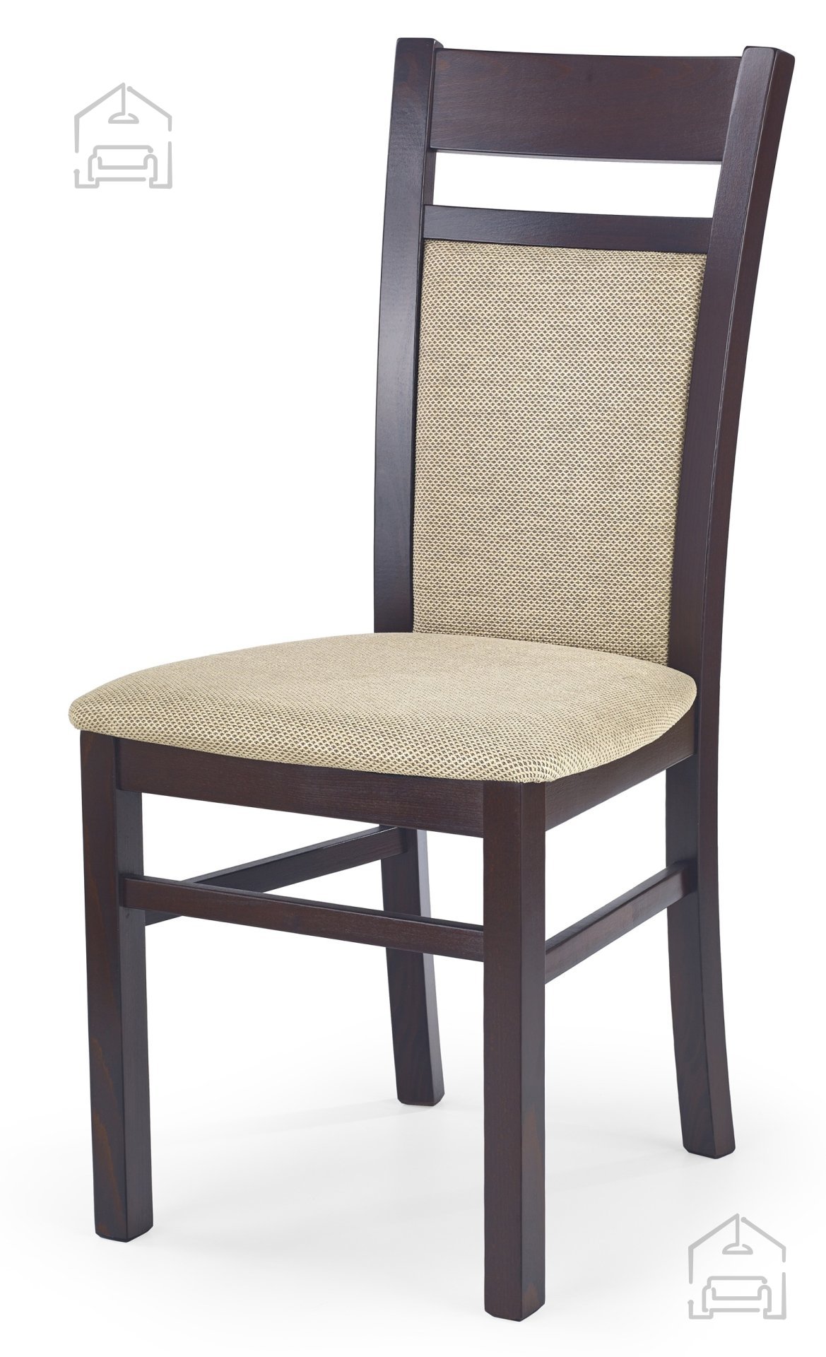 Der Essstuhl Gerard2 – Halmar ist ein klassisches Beispiel für hochwertige Verarbeitung, die natürliche Materialien und zeitloses Design vereint. Er ist aus massivem Buchenholz gefertigt und mit Stoff im Farbton Torent beige gepolstert, wodurch er gut zu vielen Esszimmerstilen passt. Die Kombination aus dunkler Walnuss und weichem beigefarbenem Stoff schafft ein Gefühl von Wärme und Gemütlichkeit und bewahrt gleichzeitig ein elegantes Erscheinungsbild.