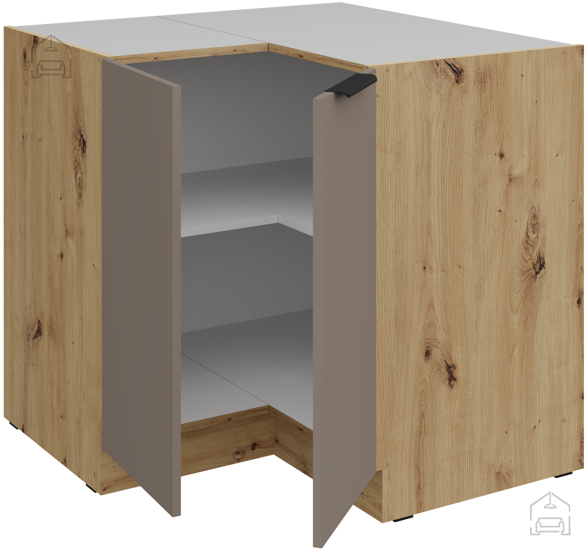 Die Kombination der Farbtöne Kaschmir, Sandgrau und Artisan Eiche schafft einen angenehmen visuellen Kontrast, der dem Raum Wärme und Eleganz verleiht. Eine solche Farbkomposition ist besonders in modernen Interieurs beliebt, in denen eine ruhige Palette natürlicher Töne vorherrscht. Die Oberflächen sind pflegeleicht – regelmäßiges Abwischen mit einem weichen Tuch und mildem Reinigungsmittel genügt, damit die Küche ihr Aussehen über Jahre hinweg behält.