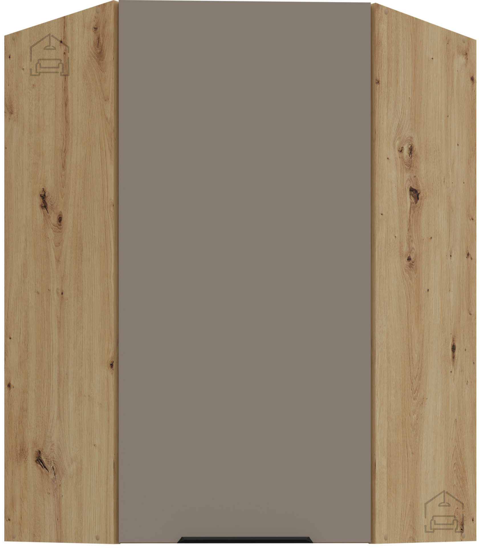 Die Kombination der Farbtöne Kaschmir, Sandgrau und Artisan-Eiche schafft einen angenehmen visuellen Kontrast, der dem Raum Wärme und Eleganz verleiht. Eine solche Farbkomposition ist besonders beliebt in modernen Interieurs, in denen eine ruhige Palette natürlicher Töne vorherrscht. Die Oberflächen sind pflegeleicht – regelmäßiges Abwischen mit einem weichen Tuch und mildem Reinigungsmittel genügt, damit die Küche ihr Aussehen über viele Jahre behält.