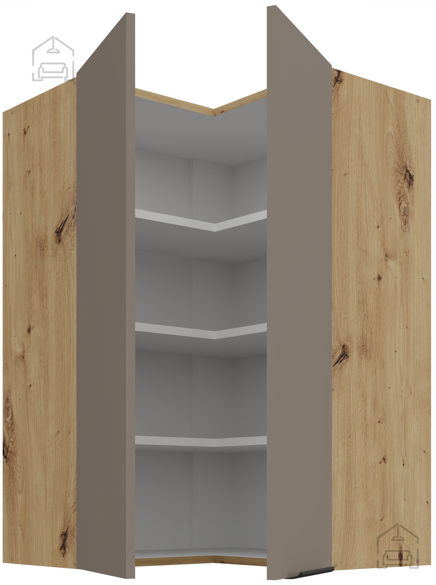 Die Kombination der Farbtöne Kaschmir, Sandgrau und Eiche Artisan schafft einen angenehmen visuellen Kontrast, der dem Raum Wärme und Eleganz verleiht. Eine solche Farbkombination ist besonders beliebt in modernen Interieurs, in denen eine ruhige Palette natürlicher Töne vorherrscht. Die Oberflächen sind pflegeleicht – regelmäßiges Abwischen mit einem weichen Tuch und mildem Reinigungsmittel genügt, damit die Küche ihr Aussehen über Jahre hinweg behält.