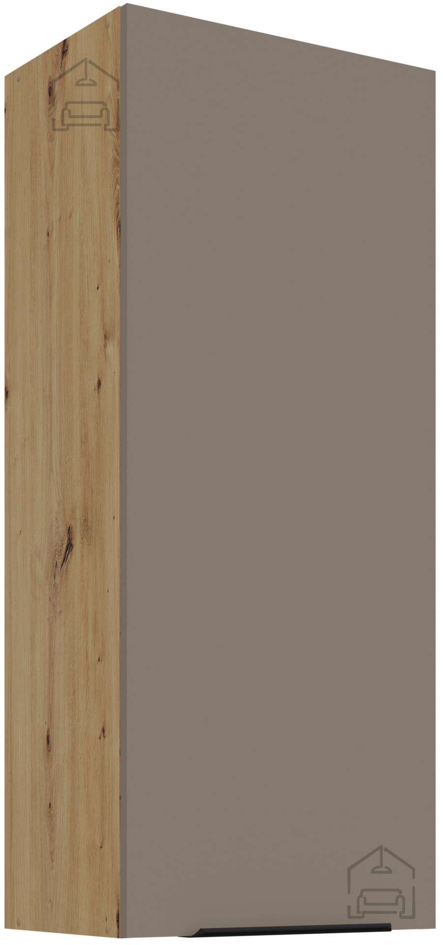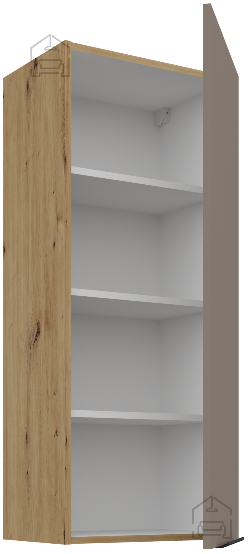 Die Kombination der Farbtöne Kaschmir, Sandgrau und Eiche Artisan schafft einen angenehmen visuellen Kontrast, der dem Raum Wärme und Eleganz verleiht. Eine solche Farbkomposition ist besonders beliebt in modernen Interieurs, in denen eine ruhige Palette natürlicher Töne vorherrscht. Die Oberflächen sind pflegeleicht – regelmäßiges Abwischen mit einem weichen Tuch und mildem Reinigungsmittel genügt, damit die Küche ihr Aussehen über Jahre hinweg behält.