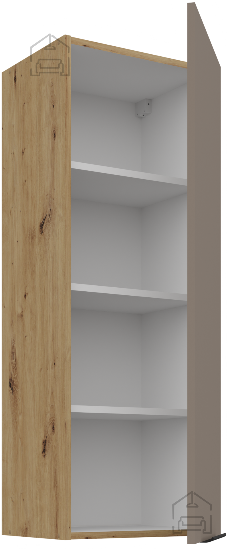 Die Kombination der Farbtöne Kaschmir, Sandgrau und Artisan Eiche schafft einen angenehmen visuellen Kontrast, der dem Raum Wärme und Eleganz verleiht. Eine solche Farbkomposition ist besonders beliebt in modernen Interieurs, in denen eine ruhige Palette natürlicher Töne vorherrscht. Die Oberflächen sind pflegeleicht – regelmäßiges Abwischen mit einem weichen Tuch und mildem Reinigungsmittel genügt, damit die Küche ihr Aussehen über Jahre hinweg behält.