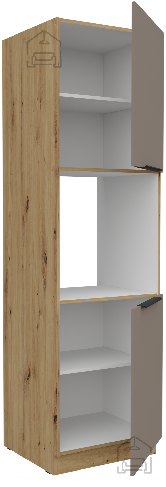 Die Küchenzeile Aria in der Farbkombination Sandgrau und Artisan Eiche vereint modernes Aussehen und Funktionalität, die den Anforderungen eines zeitgemäßen Haushalts entspricht. Sie ist aus einer hochwertigen laminierten Platte mit einer Stärke von 16 mm gefertigt, was Festigkeit und eine lange Lebensdauer gewährleistet. Mit ihrer neutralen, aber warmen Farbpalette schafft sie eine angenehme Atmosphäre im Raum und ermöglicht eine einfache Kombination mit verschiedenen Wandtönen, Bodenbelägen und Accessoires. Die Oberfläche ist kratzfest und leicht zu reinigen, daher eignet sich die Zeile für den täglichen Gebrauch in aktiven Küchen.