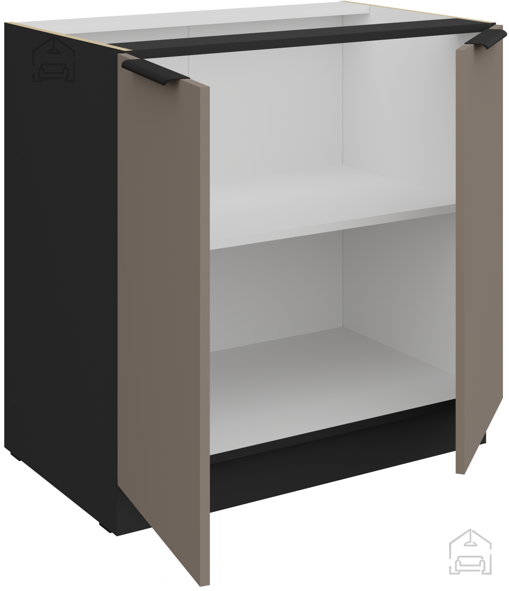 Das Grundmaterial des Ensembles ist eine laminierte Platte mit einer Stärke von 16 mm, die eine hohe Beständigkeit gegen mechanische Beschädigungen, Feuchtigkeit und Hitze gewährleistet. Eine solche Konstruktion ermöglicht eine langfristige Nutzung ohne sichtbare Gebrauchsspuren. Die Oberfläche lässt sich leicht reinigen, was in der Küche besonders wichtig ist. Der Rahmen besteht aus Spanplatte, was zusätzlich zur Stabilität und visuellen Einheitlichkeit der einzelnen Elemente beiträgt. Die Kanten sind präzise bearbeitet, wodurch das Abplatzen des Laminats verhindert und die Lebensdauer der Möbel verlängert wird.