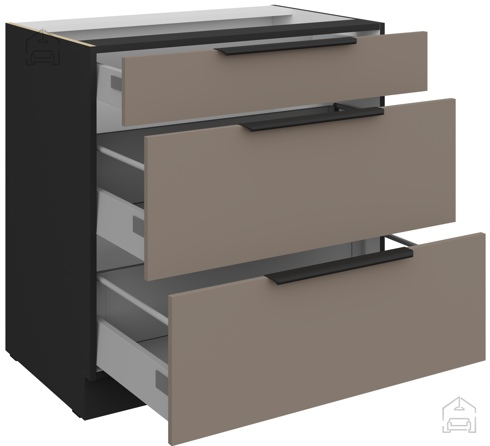 Das Küchenensemble Aria in der Farbkombination Sandgrau/Schwarz stellt einen modernen Ansatz für die Gestaltung des Küchenraums dar, bei dem sich Ästhetik und Funktionalität zu einer perfekten Einheit ergänzen. Es wird in der renommierten polnischen Fabrik Stolarz-Lempert hergestellt, die für die hochwertige Verarbeitung der Materialien und die präzise Herstellung der Möbelteile bekannt ist. Aufgrund seines durchdachten Designs und der langlebigen Materialien ist dieses Ensemble die ideale Wahl für jedes Zuhause, das Nachhaltigkeit, Praktikabilität und Eleganz schätzt.