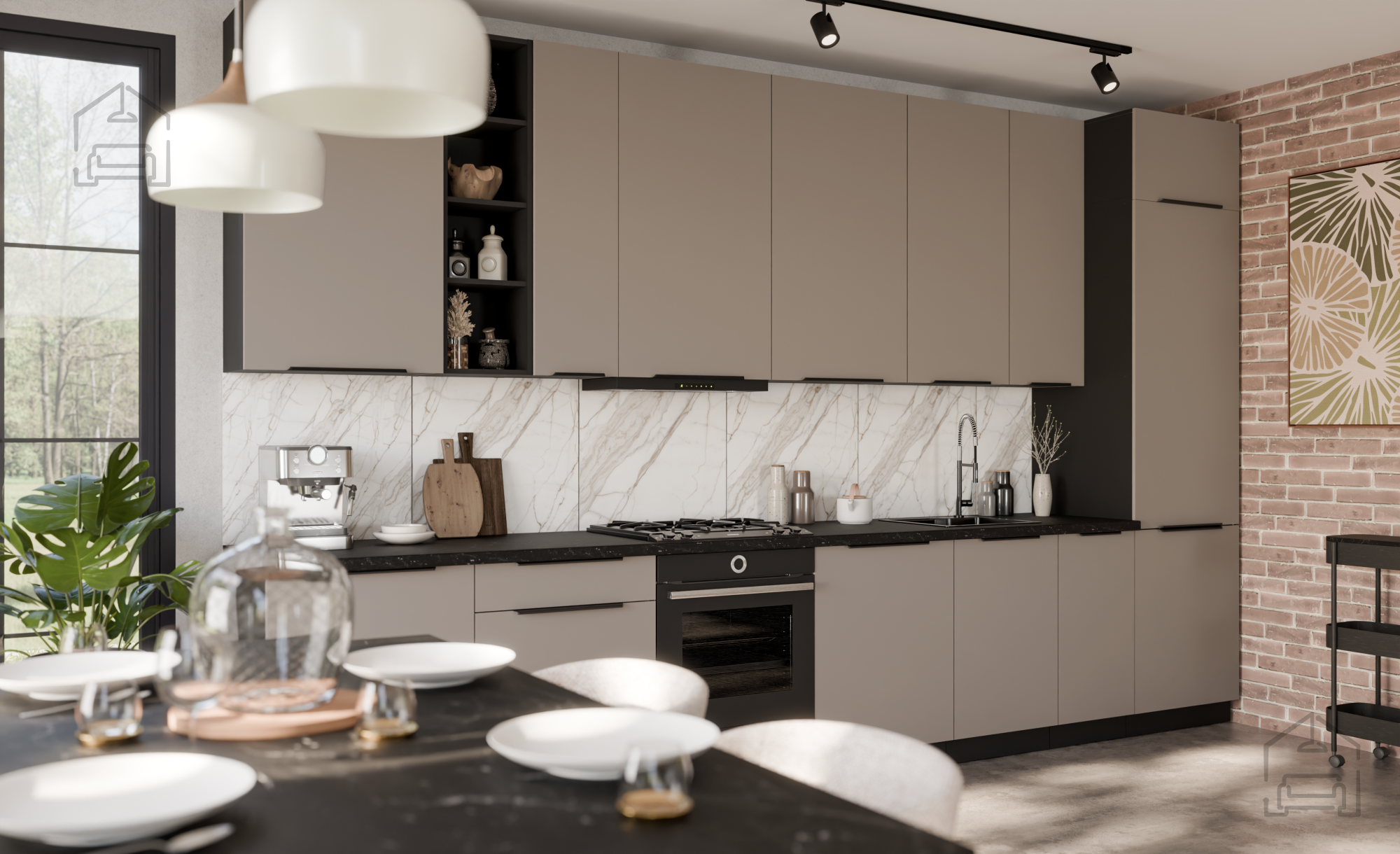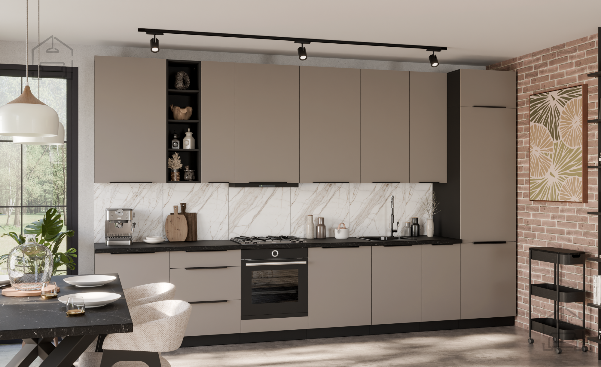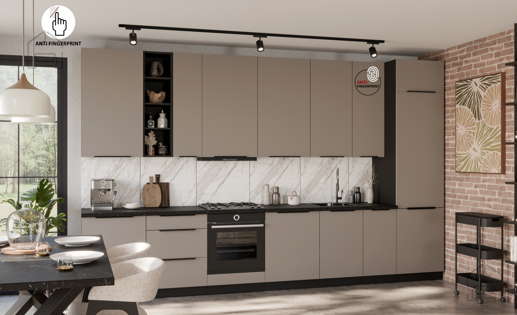 Das Küchenensemble Aria in der Farbkombination Sandgrau/Schwarz stellt einen modernen Ansatz für die Gestaltung des Küchenraums dar, bei dem sich Ästhetik und Funktionalität zu einer perfekten Einheit ergänzen. Es wird in der renommierten polnischen Fabrik Stolarz-Lempert hergestellt, die für ihre hochwertige Materialverarbeitung und präzise Herstellung von Möbelelementen bekannt ist. Aufgrund seines durchdachten Designs und der langlebigen Materialien ist dieses Ensemble die ideale Wahl für jedes Zuhause, das Nachhaltigkeit, Praktikabilität und Eleganz schätzt.