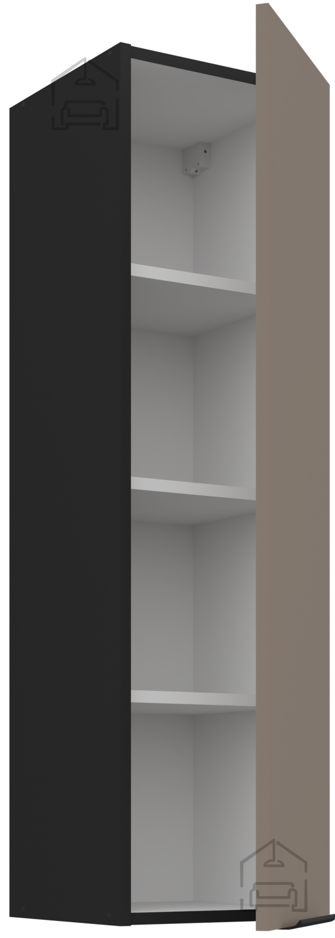 Alle Elemente des Ensembles sind mit Systemen für sanftes Schließen von Fronten und Schubladen ausgestattet. Diese Lösung verhindert Stöße beim Schließen von Türen und Schubladen und sorgt für einen leisen und sanften Betrieb. Ein solches System erhöht nicht nur den Nutzungskomfort, sondern verlängert auch die Lebensdauer der Beschläge und erhält die Stabilität der Konstruktion.