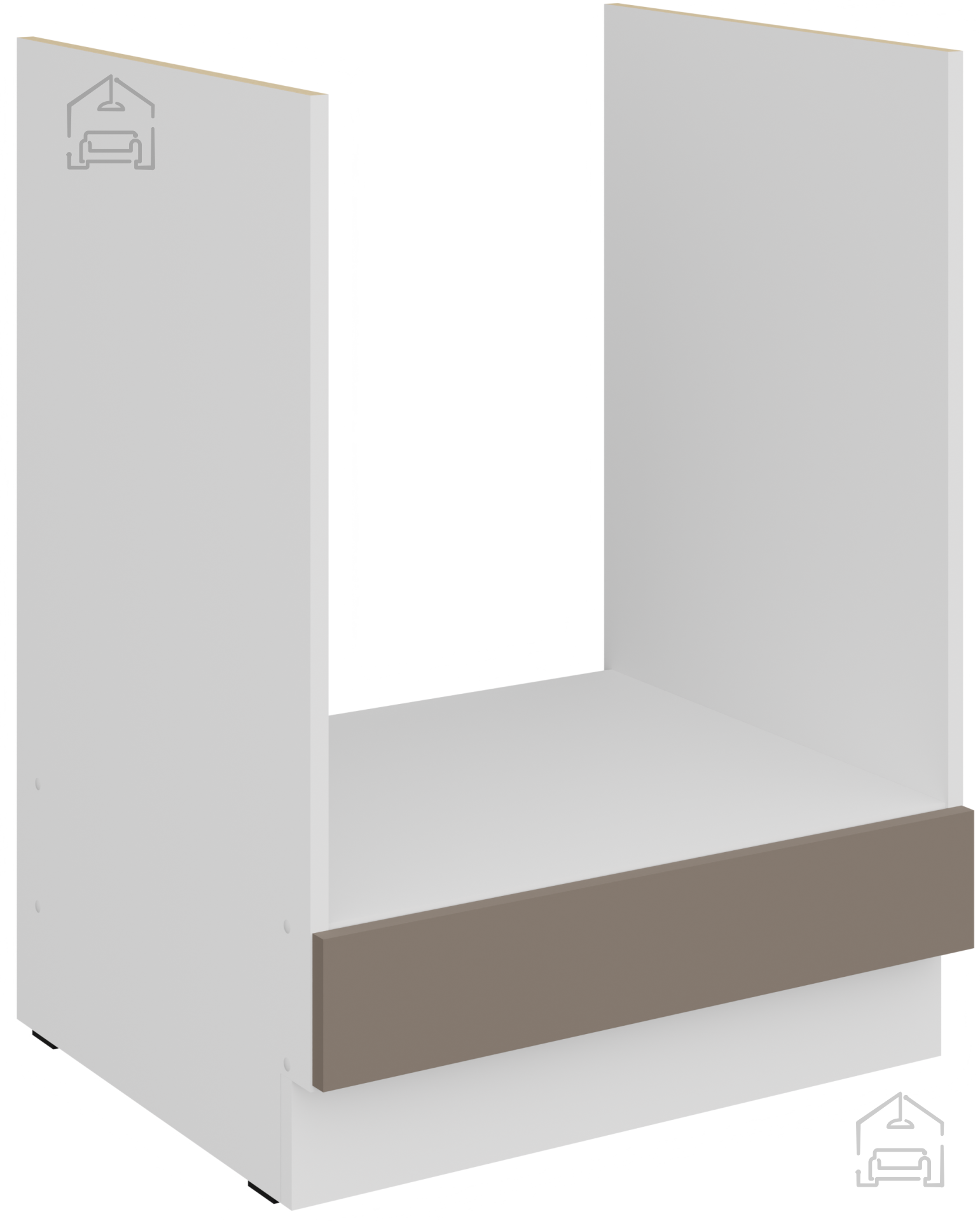 Die Farbkombination sandgrau/weiß (sandgrau und weiß) schafft einen hellen, luftigen Eindruck und vermittelt gleichzeitig ein Gefühl von Wärme und Reinheit. Ein solches Design ermöglicht eine einfache Kombination mit verschiedenen Arten von Dekor, Bodenbelägen und Accessoires. Die weiße Farbe vergrößert den Raum optisch und schafft ein Gefühl von Ordnung, während die sandgrauen Töne einen modernen Touch und Eleganz verleihen. Griffe edge UA‑HEXA in schwarz‑aluminiumfarbener Ausführung sind minimalistisch und zugleich markant, da sie Ästhetik und Praktikabilität vereinen. Der Griffabstand beträgt 64 mm bis 320 mm, was eine bequeme Nutzung aller Türen und Schubladen ermöglicht.