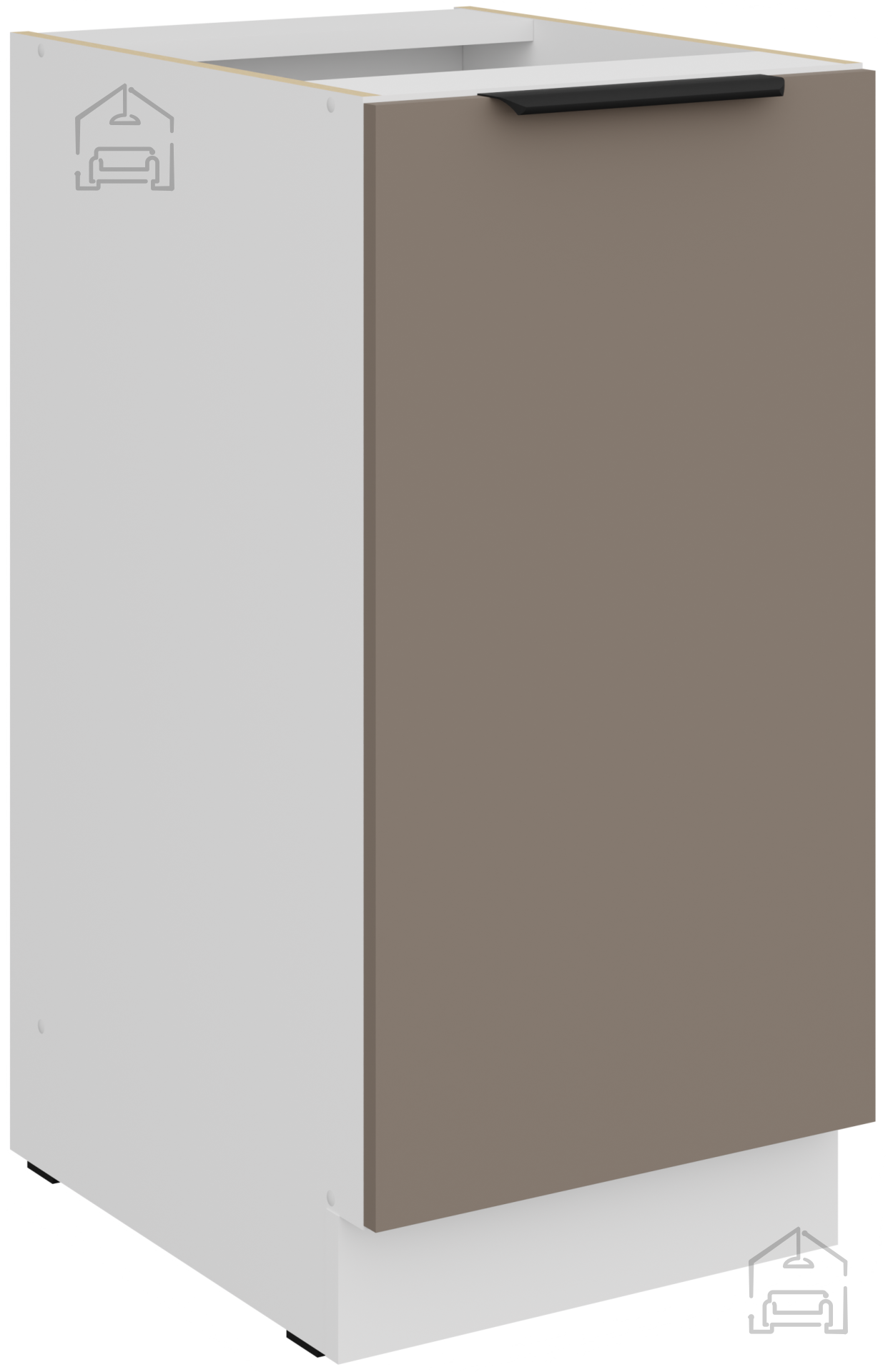 Die Farbkombination sandgrau/weiß (sandgrau und weiß) schafft einen hellen, luftigen Eindruck und vermittelt gleichzeitig ein Gefühl von Wärme und Reinheit. Ein solches Design ermöglicht eine einfache Kombination mit verschiedenen Arten von Dekor, Bodenbelägen und Accessoires. Die weiße Farbe vergrößert den Raum optisch und schafft ein Gefühl von Ordnung, während die sandgrauen Töne einen modernen Touch und Eleganz hinzufügen. Griffe edge UA‑HEXA in schwarz‑aluminiumausführung sind minimalistisch, aber gleichzeitig markant, da sie Ästhetik und Praktikabilität vereinen. Der Griffabstand beträgt 64 mm bis 320 mm, was eine bequeme Nutzung aller Türen und Schubladen ermöglicht.