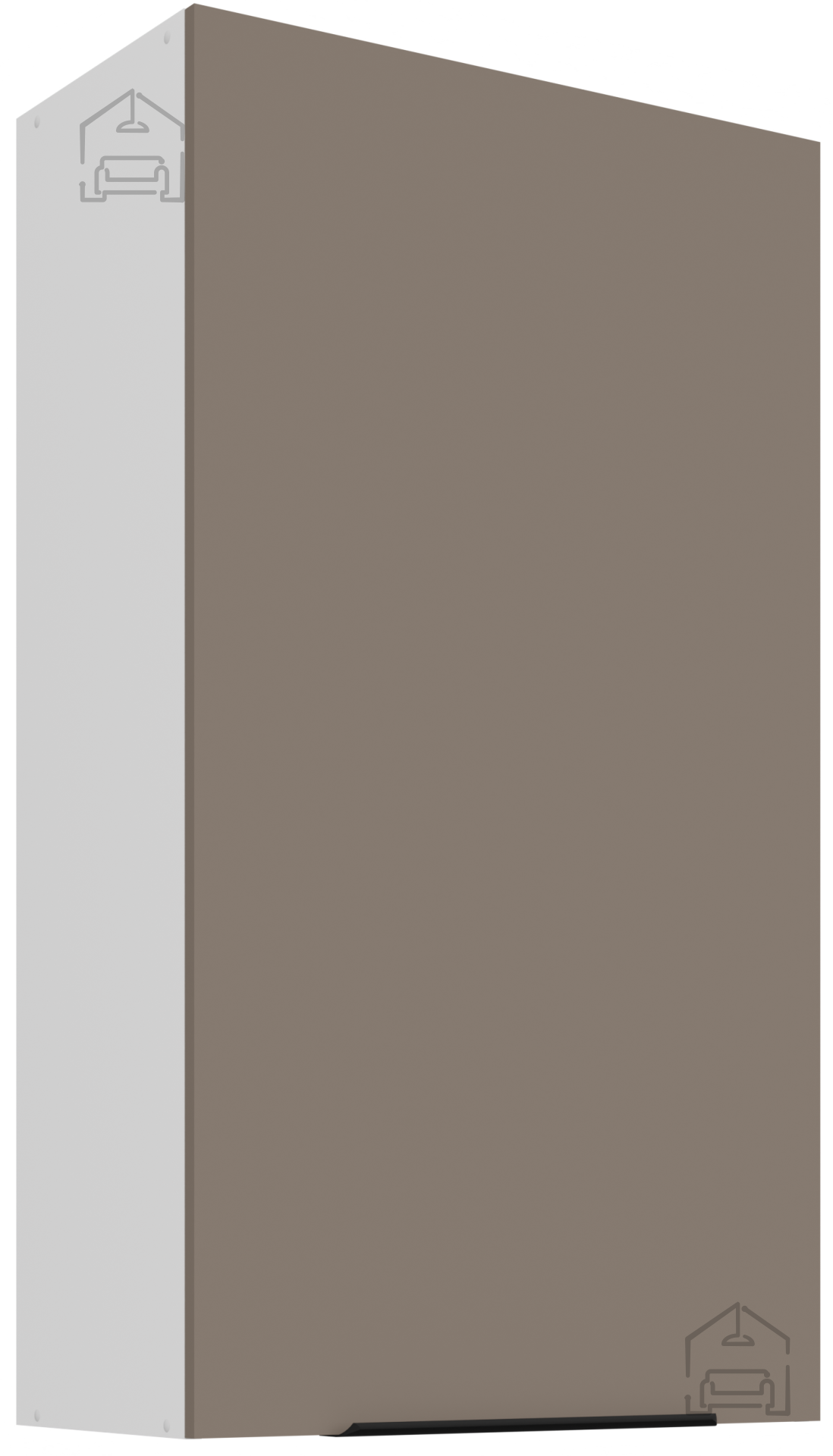 Die Farbkombination Sandgrau/Weiß (sandgrau und weiß) schafft einen hellen, luftigen Eindruck und vermittelt gleichzeitig ein Gefühl von Wärme und Reinheit. Ein solches Design ermöglicht eine einfache Kombination mit verschiedenen Arten von Dekor, Bodenbelägen und Accessoires. Die weiße Farbe vergrößert den Raum optisch und schafft ein Gefühl von Ordnung, während die sandgrauen Töne einen modernen Touch und Eleganz verleihen. Griffe Edge UA‑HEXA in schwarz‑aluminiumfarbener Ausführung sind minimalistisch, aber zugleich markant, da sie Ästhetik und Praktikabilität vereinen. Der Griffabstand beträgt 64 mm bis 320 mm, was eine komfortable Nutzung aller Türen und Schubladen ermöglicht.