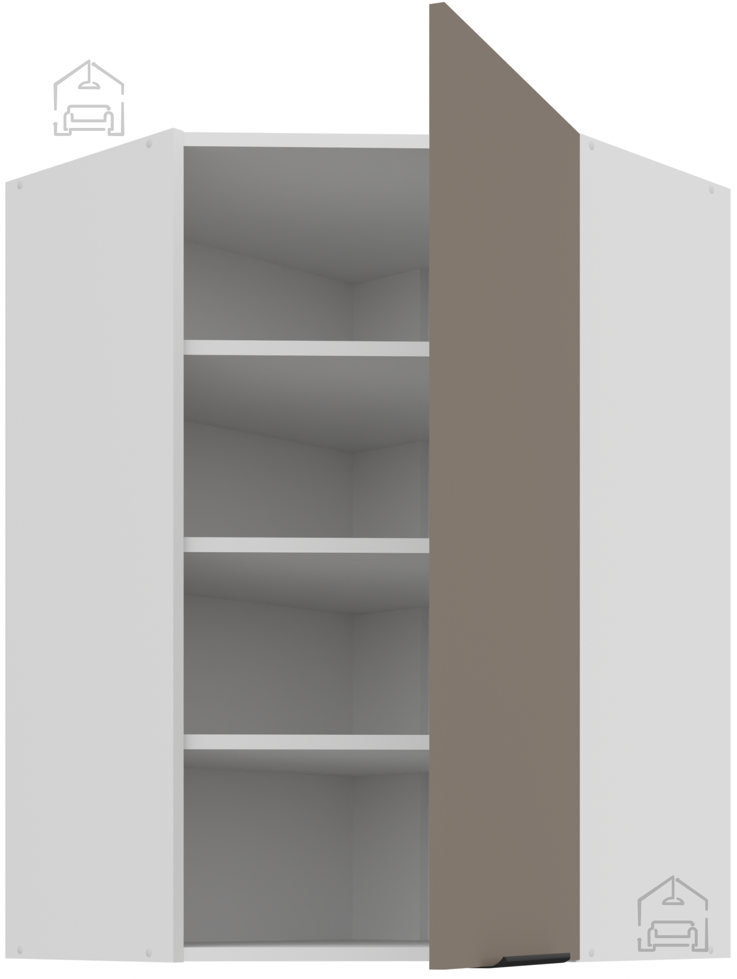 Die Farbkombination Sandgrau/Weiß (sandgrau und weiß) schafft einen hellen, luftigen Eindruck und vermittelt gleichzeitig ein Gefühl von Wärme und Reinheit. Ein solches Design ermöglicht eine einfache Kombination mit verschiedenen Arten von Dekor, Bodenbelägen und Accessoires. Die weiße Farbe vergrößert den Raum optisch und schafft ein Gefühl von Ordnung, während die sandgrauen Töne einen modernen Touch und Eleganz hinzufügen. Griffe edge UA‑HEXA in schwarz‑aluminiumfarbener Ausführung sind minimalistisch, aber dennoch markant, da sie Ästhetik und Praktikabilität vereinen. Der Griffabstand beträgt 64 mm bis 320 mm, was eine komfortable Nutzung aller Türen und Schubladen ermöglicht.