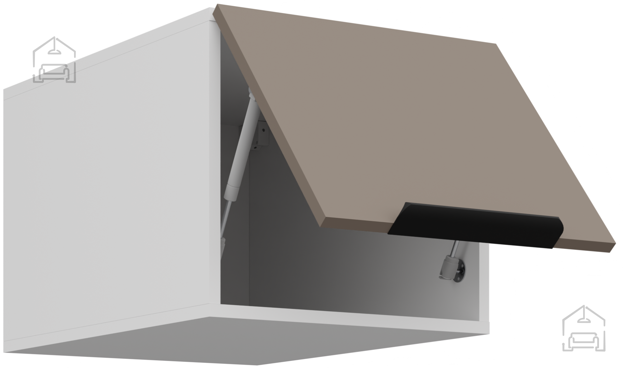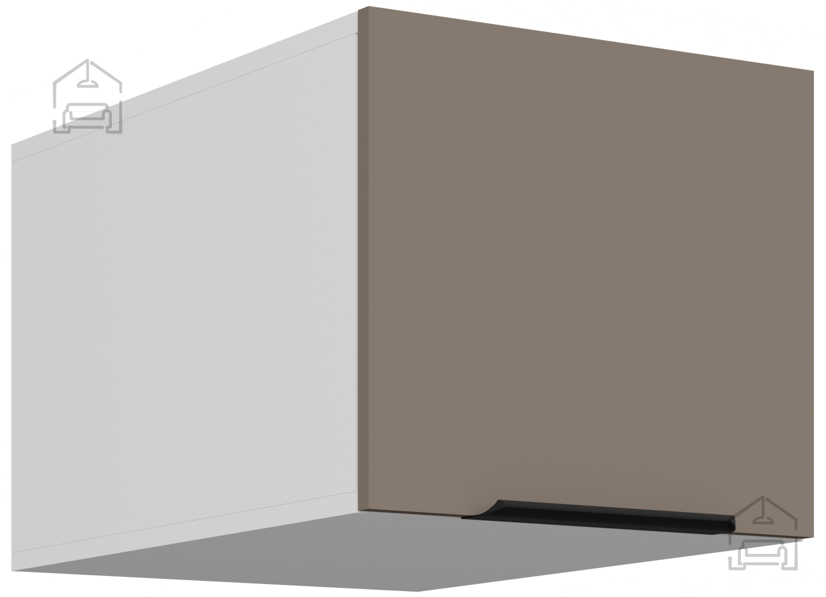Die Farbkombination Sandgrau/Weiß (sandgrau und weiß) schafft einen hellen, luftigen Eindruck und vermittelt gleichzeitig ein Gefühl von Wärme und Reinheit. Ein solches Design ermöglicht eine einfache Kombination mit verschiedenen Arten von Dekor, Bodenbelägen und Accessoires. Die weiße Farbe vergrößert den Raum optisch und schafft ein Gefühl von Ordnung, während die sandgrauen Töne einen modernen Touch und Eleganz verleihen. Griffe Edge UA‑HEXA in schwarz‑aluminiumfarbener Ausführung sind minimalistisch, aber gleichzeitig markant, da sie Ästhetik und Praktikabilität verbinden. Der Griffabstand beträgt 64 mm bis 320 mm, was eine komfortable Nutzung aller Türen und Schubladen ermöglicht.