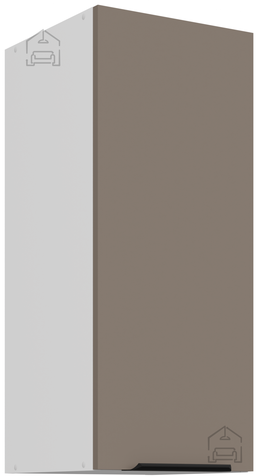 Die Farbkombination Sandgrau/Weiß (sandgrau und weiß) erzeugt einen hellen, luftigen Eindruck und vermittelt zugleich ein Gefühl von Wärme und Sauberkeit. Ein solches Design ermöglicht eine einfache Kombination mit verschiedenen Dekorarten, Bodenbelägen und Accessoires. Die weiße Farbe vergrößert den Raum optisch und schafft ein Gefühl von Ordnung, während die sandgrauen Töne einen modernen Touch und Eleganz hinzufügen. Griffe Edge UA‑HEXA in schwarz‑aluminiumfarbener Ausführung sind minimalistisch, aber dennoch markant, da sie Ästhetik und Zweckmäßigkeit vereinen. Der Griffabstand beträgt 64 mm bis 320 mm, was eine komfortable Nutzung aller Türen und Schubladen ermöglicht.