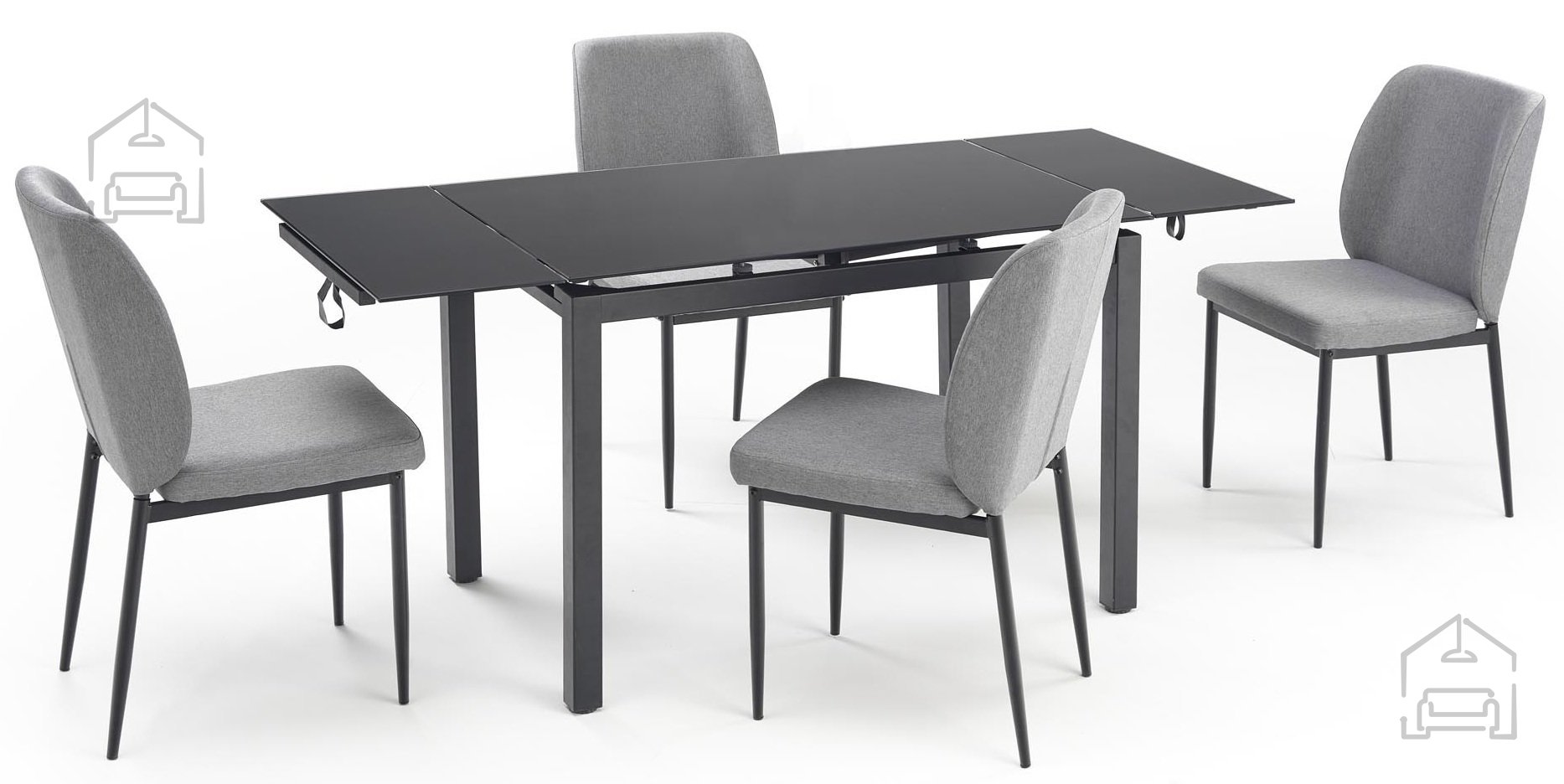 Das Esszimmer-Set Jasper von Halmar vereint modernes Design, hochwertige Materialien und durchdachte Funktionalität. Dieses Set ist für alle gedacht, die Ästhetik, Haltbarkeit und Praktikabilität in einem Produkt schätzen. Durch die Kombination von Glas und pulverbeschichtetem Stahl in einer schwarz-grauen Farbkombination entsteht ein elegantes Erscheinungsbild, das sowohl zu modernen als auch zu klassischen Interieurs passt. Es ist ideal für kleinere Räume, in denen Flexibilität wichtig ist, da es die Möglichkeit bietet, den Tisch auszuziehen und bequem für vier Personen zu sitzen.