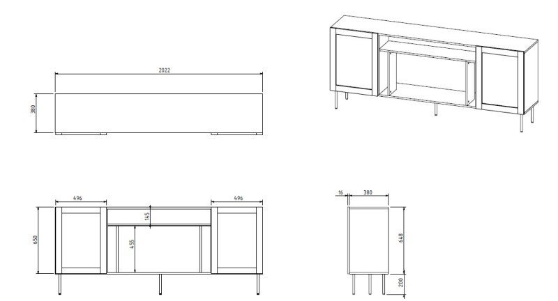 Die Kommode Juta – EF zeichnet sich durch ihr modernes Aussehen und ein durchdachtes Design aus, das Ästhetik und Praktikabilität in einem Möbelstück vereint. Mit den Abmessungen 202x39,5x85 cm bietet sie ausreichend Stauraum und fügt sich gleichzeitig harmonisch in das Wohnzimmer, Esszimmer oder den Flur ein. Ihre schwarze matte Farbe betont den minimalistischen Stil, während hochwertige Materialien Langlebigkeit und Stabilität im täglichen Gebrauch gewährleisten.