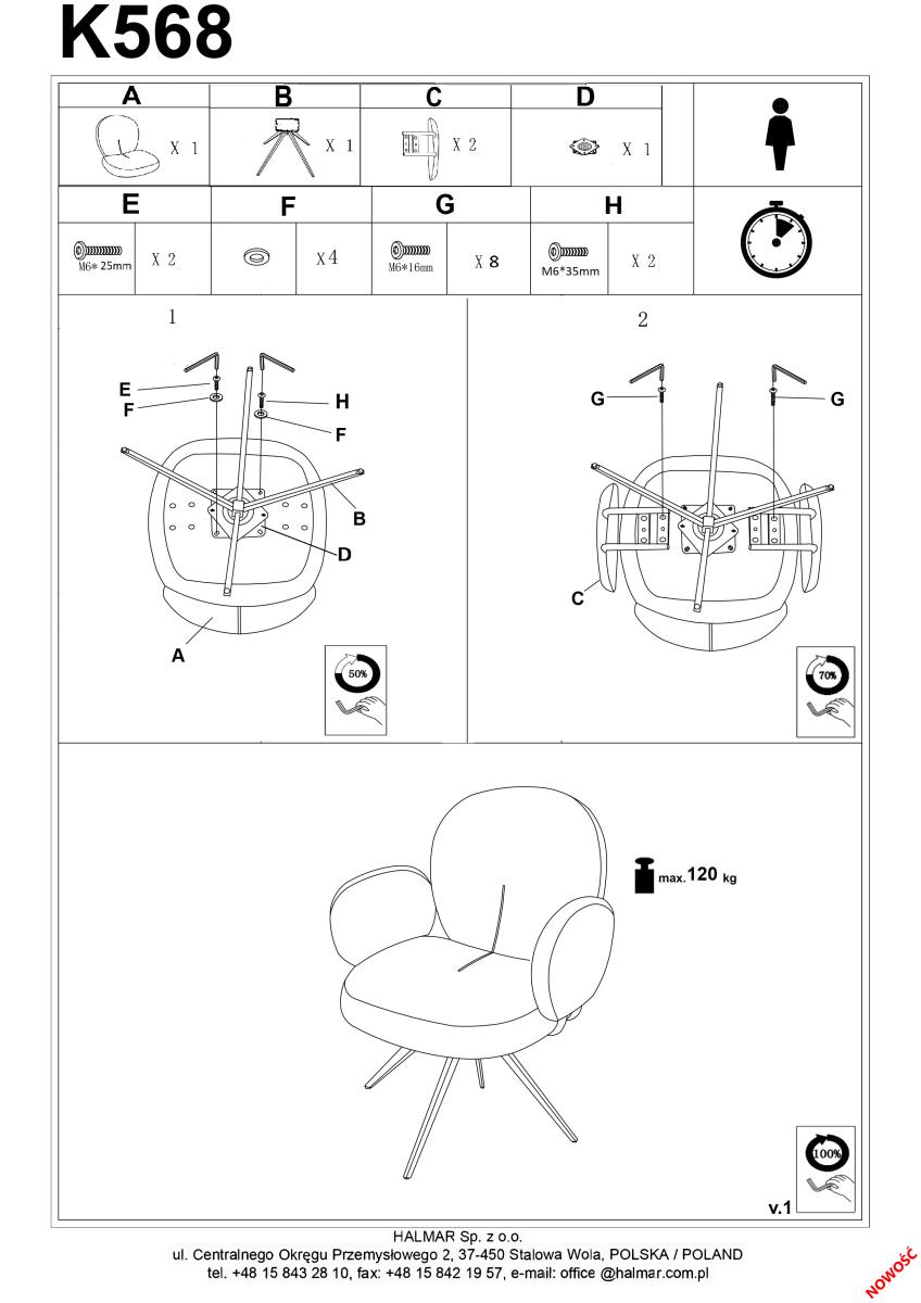 Der Esszimmerstuhl K568 – Halmar ist ein perfektes Beispiel für modernes Design, das Funktionalität, Komfort und ästhetische Vollkommenheit vereint. Seine elegante Silhouette und die warme Zimtfarbe schaffen eine angenehme Atmosphäre im Esszimmer oder in der Küche, während der Drehmechanismus zusätzliche Praktikabilität im täglichen Gebrauch bietet. Der Stuhl ist aus hochwertigem Stoff und strapazierfähigem pulverbeschichtetem Stahl gefertigt, was eine lange Lebensdauer und einfache Pflege gewährleistet. Mit seiner ausgewogenen Kombination aus Farben und Materialien fügt er sich mühelos in verschiedene Einrichtungsstile ein – von modern bis klassisch.