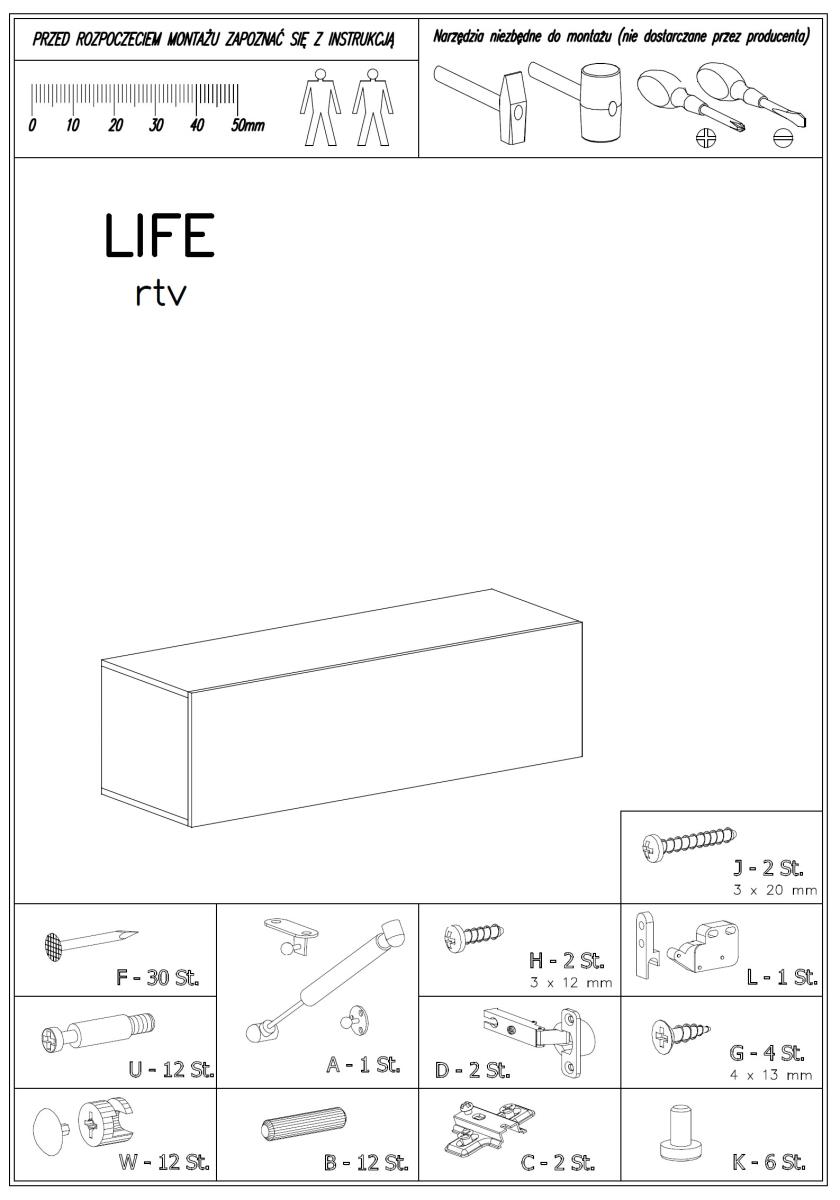 Die Kommode Life ist mit Blick auf Praktikabilität entworfen. Ihre gesamte Breite von 300 cm ist in mehrere funktionale Bereiche unterteilt, die zusammen ein harmonisches Ganzes bilden. Im Rahmen der Konstruktion befindet sich ein größerer Schrank mit einer nach unten öffnenden Klapptür, in dessen Innerem sich ein geräumiges Fach zur Aufbewahrung von Multimedia-Geräten, Kabeln oder Zubehör verbirgt. Dieses Design ermöglicht einen einfachen Zugang und bewahrt gleichzeitig die klaren Linien des Äußeren.