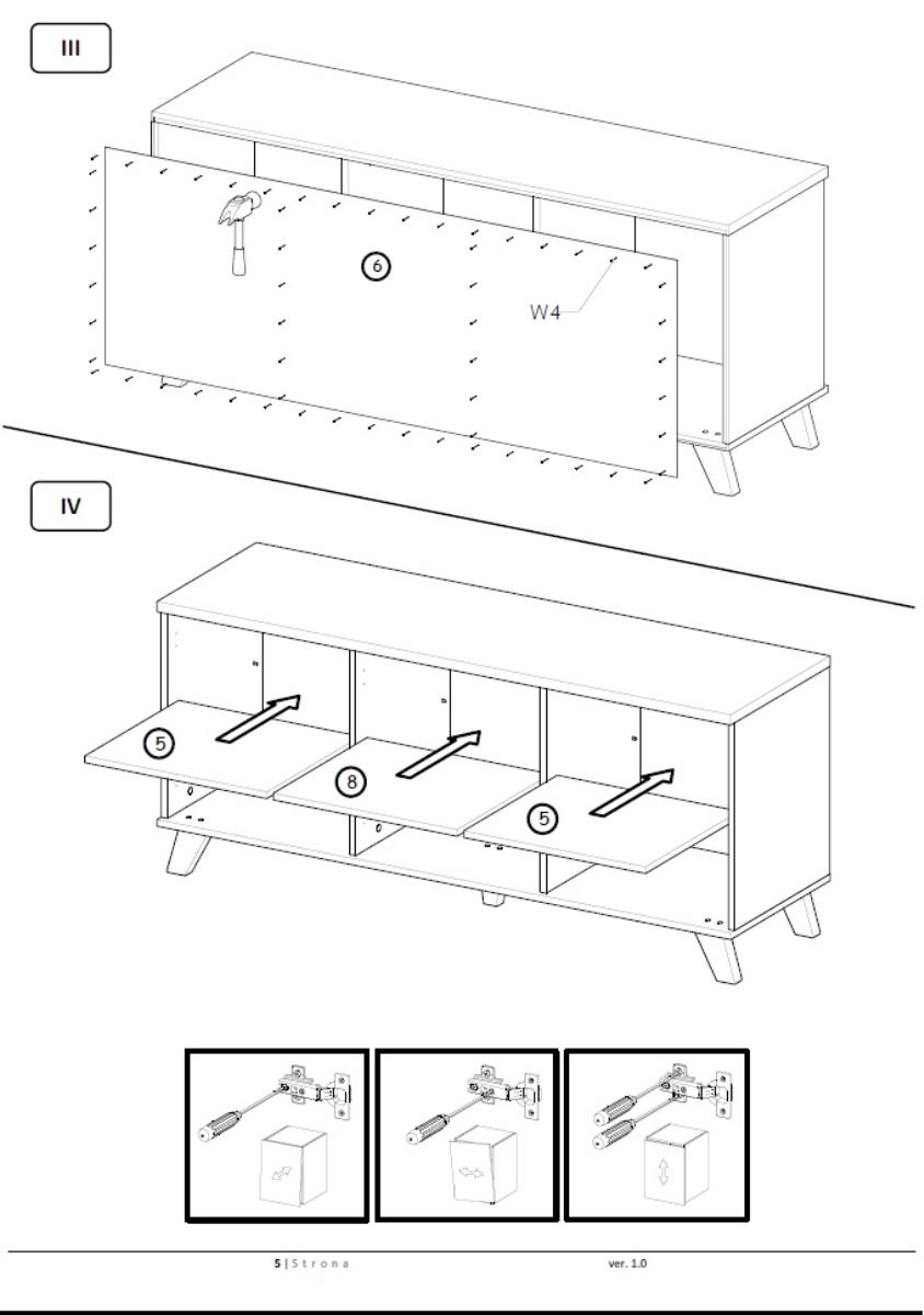 Das Modell Lotta 150 cm 3D4S ist in drei Türschränke und vier Schubladen unterteilt, was eine effiziente Raumnutzung ermöglicht. In den Schränken gibt es ausreichend Platz zum Verstauen größerer Gegenstände wie Bettwäsche, Dokumente oder Geschirr, während die Schubladen eine übersichtliche Aufbewahrung kleinerer Dinge bieten. Diese Kombination aus Türen und Schubladen sorgt dafür, dass alles, was Sie benötigen, stets griffbereit, aber dennoch diskret verstaut ist.