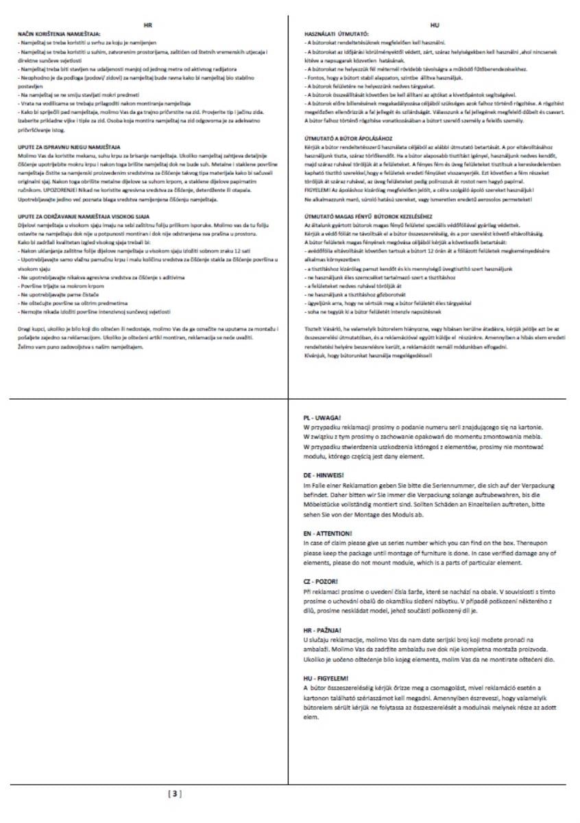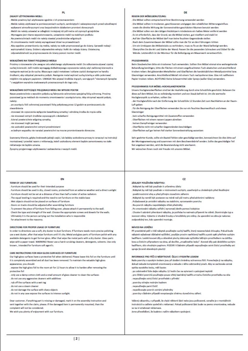 Matte Spanplattenoberflächen lassen sich leicht mit einem weichen, leicht feuchten Tuch reinigen. Die Oberfläche ist beständig gegen übliche Flecken, daher ist der Schrank auch für den täglichen Gebrauch in stärker frequentierten Räumen geeignet. Die in Sonoma-Eiche behandelten Holzteile behalten ihr Aussehen lange Zeit, wenn sie mit milden Reinigungsmitteln ohne starke Lösungsmittel gepflegt werden.