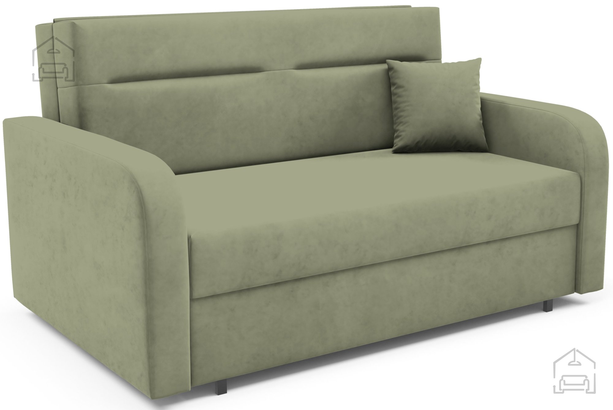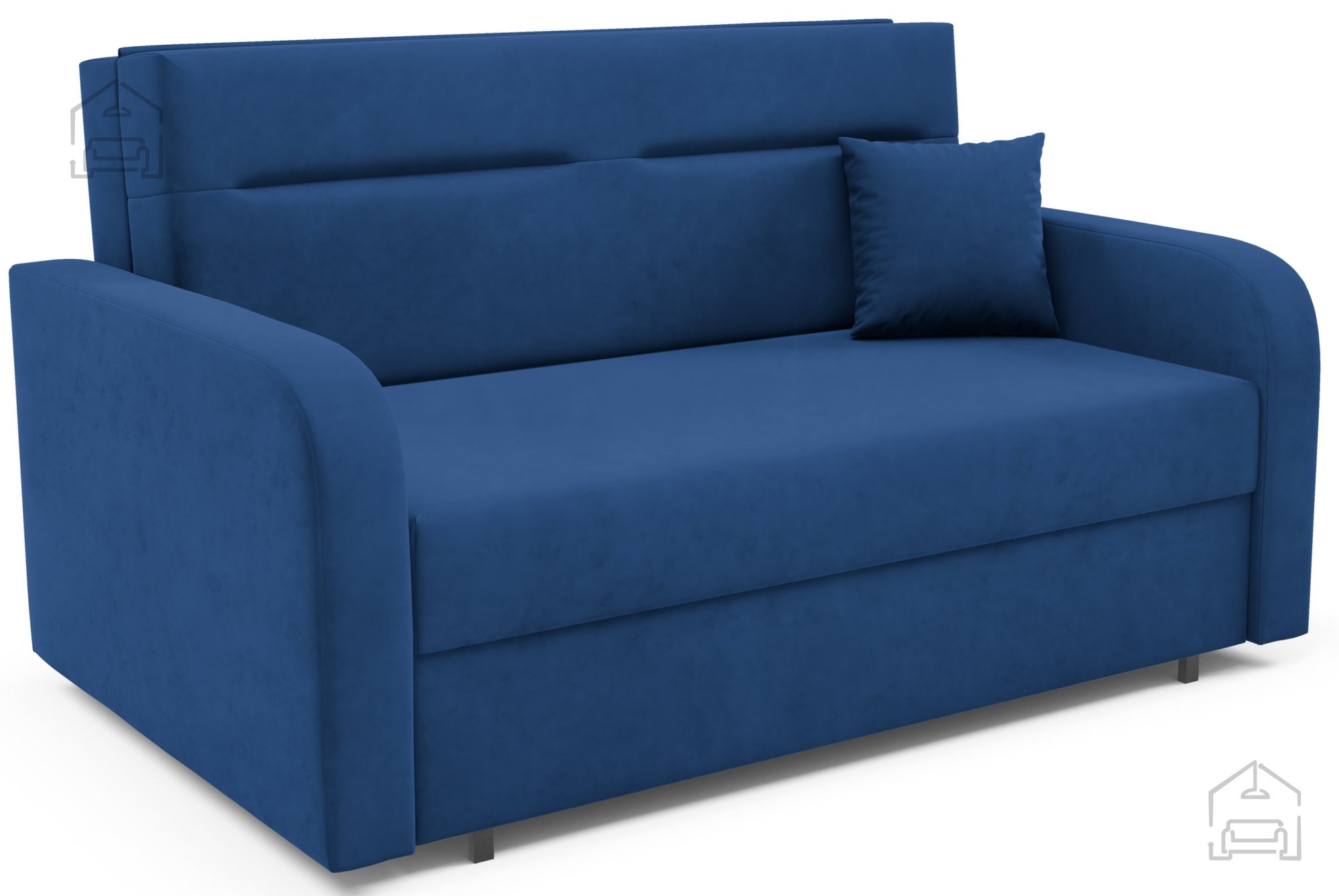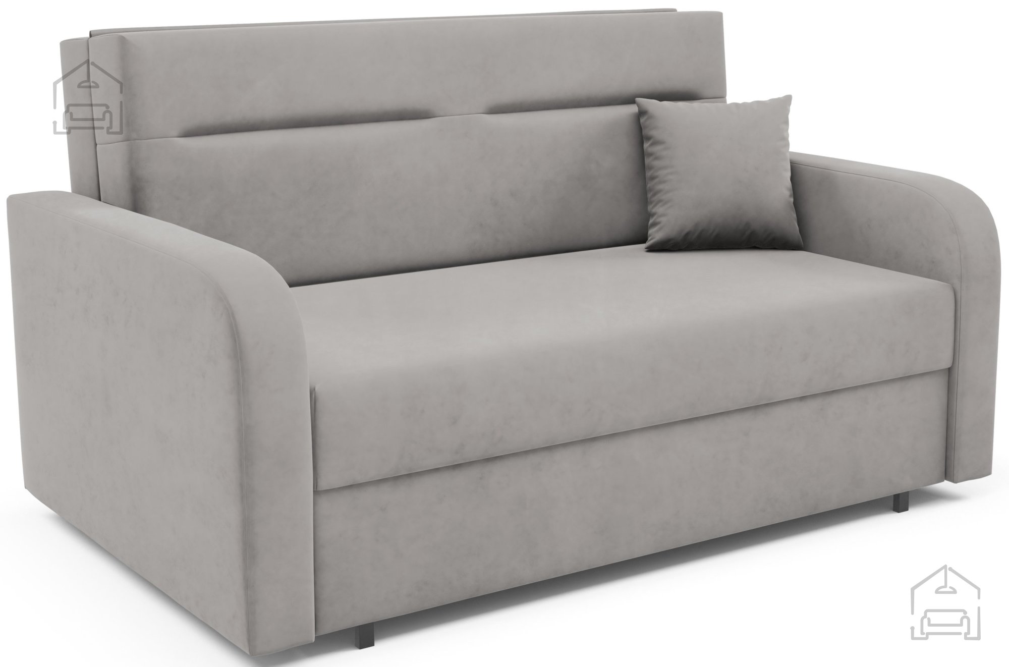 Auf dem Foto ist der Zweisitzer im Stoff Kronos 46 dargestellt, der in Aussehen und Haptik an Samt erinnert und dem Raum eine angenehme Wärme verleiht. Das Modell ist in mehreren Farbvarianten erhältlich, sodass es sich leicht an die bestehende Inneneinrichtung anpassen lässt. Aufgrund seiner kompakten Größe und seines neutralen Designs passt es sowohl in Kinder- als auch in Jugendzimmer, kleinere Wohnzimmer oder Ferienhäuser.