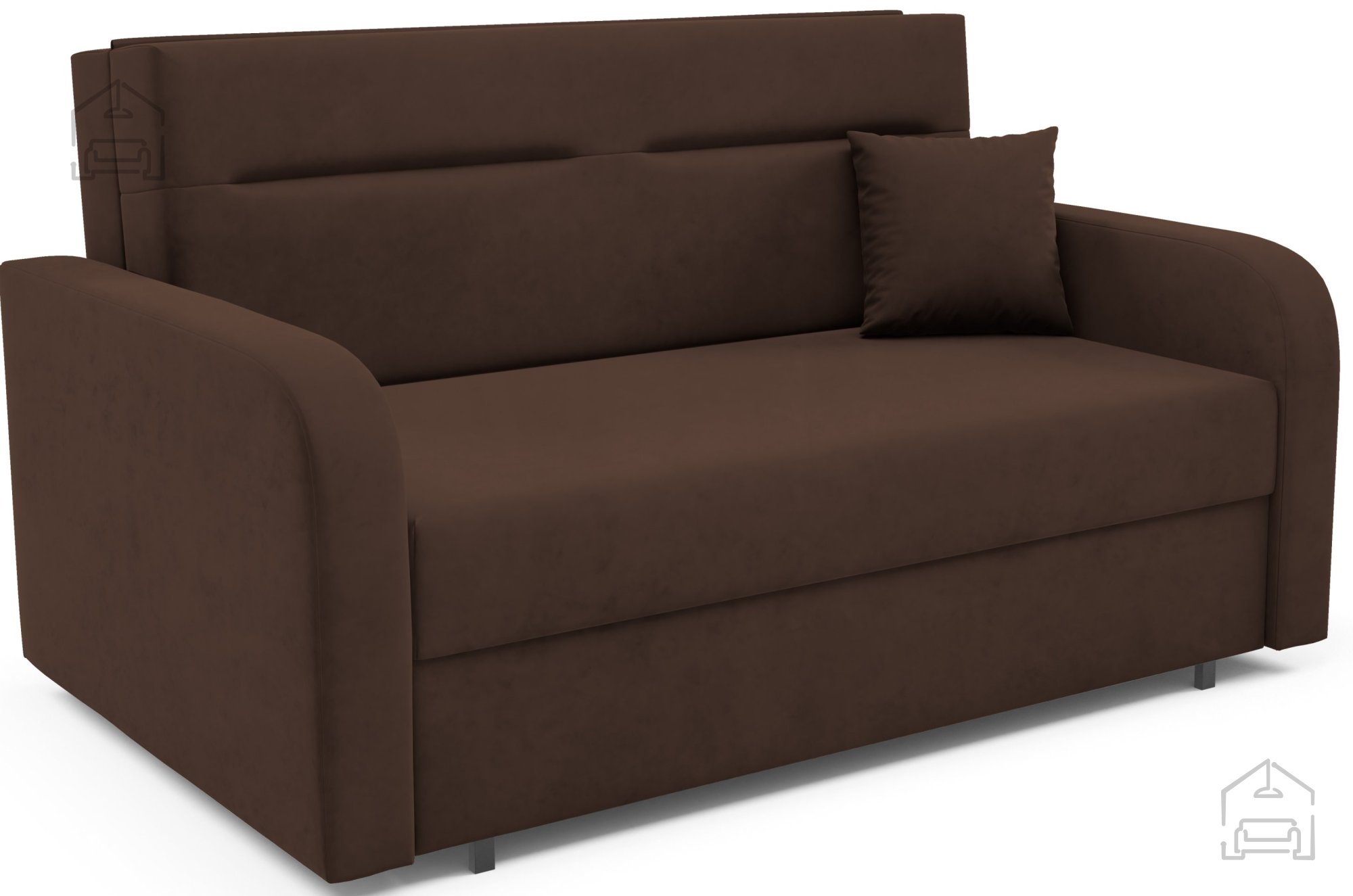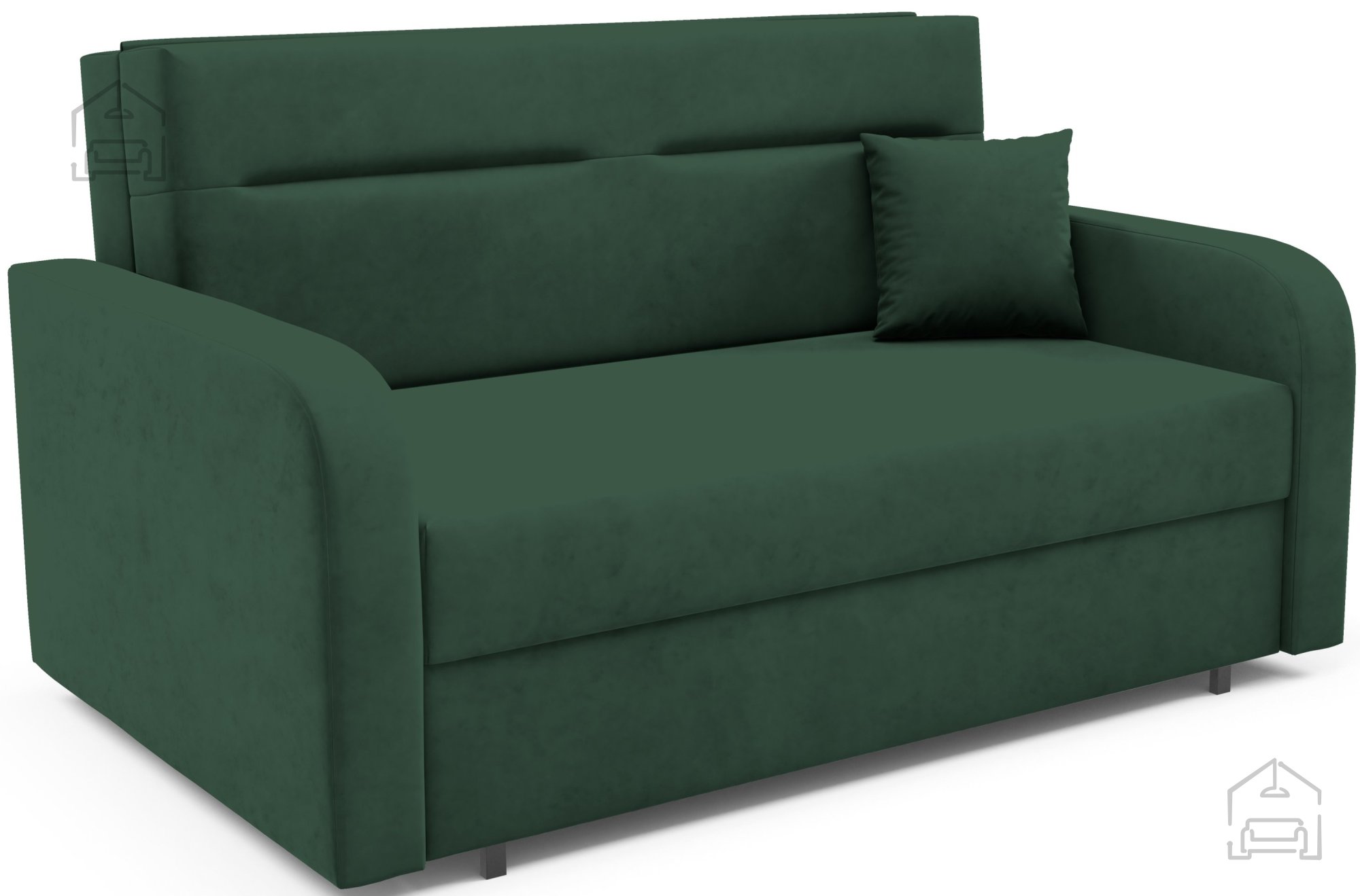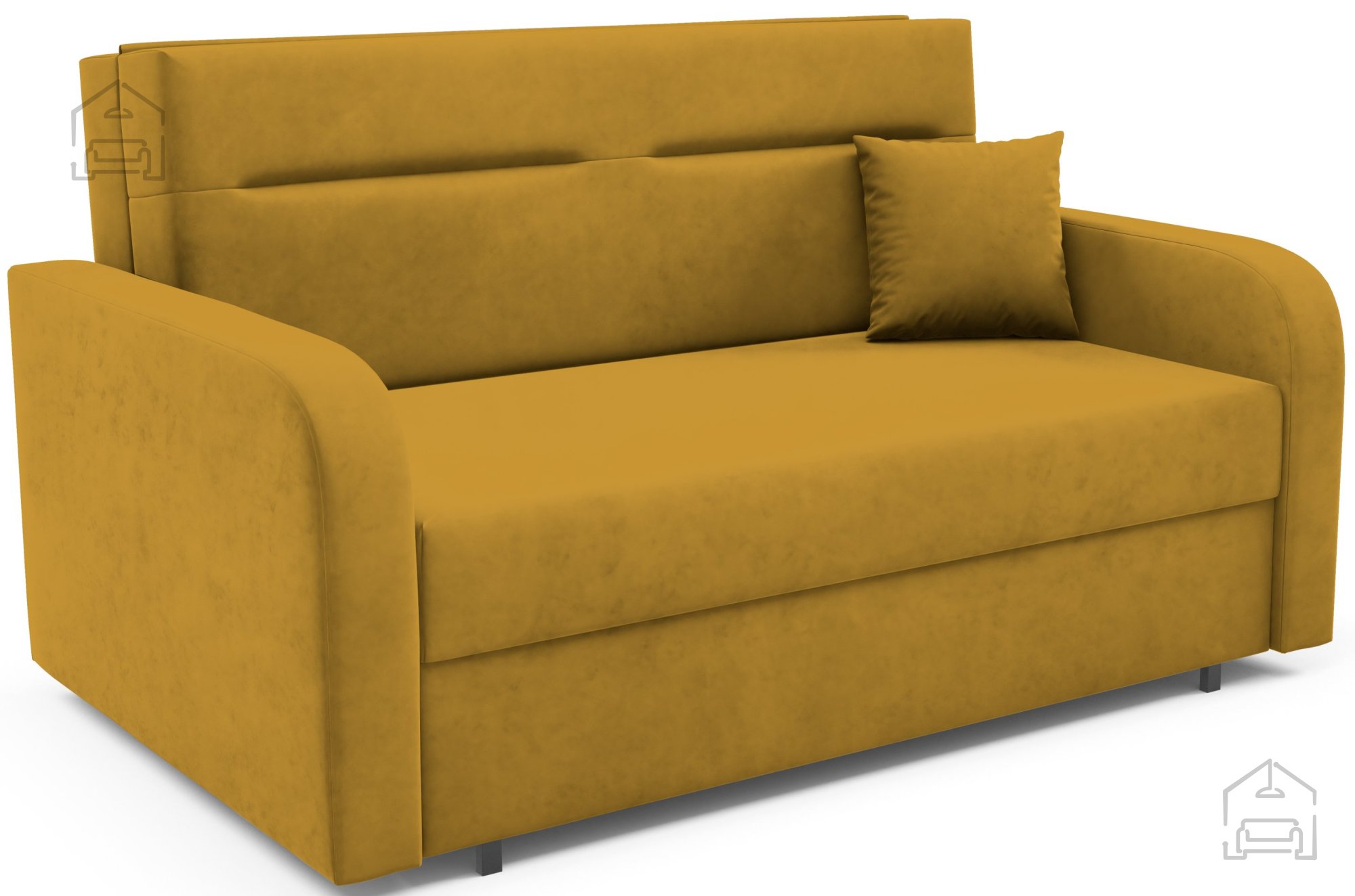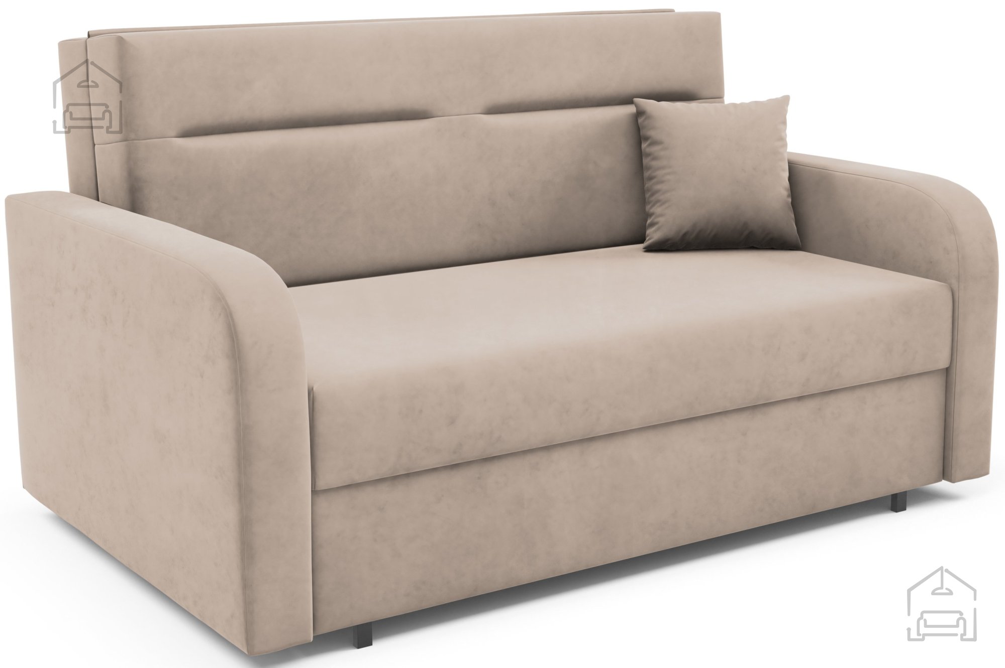 Auf dem Foto ist der Zweisitzer im Stoff Kronos 46 dargestellt, der in Aussehen und Haptik an Samt erinnert und dem Raum eine angenehme Wärme verleiht. Das Modell ist in mehreren Farbvarianten erhältlich, sodass es sich leicht an die bestehende Inneneinrichtung anpassen lässt. Aufgrund seiner kompakten Größe und seines neutralen Designs passt es sowohl in Kinder- als auch in Jugendzimmer, kleinere Wohnzimmer oder Ferienhäuser.