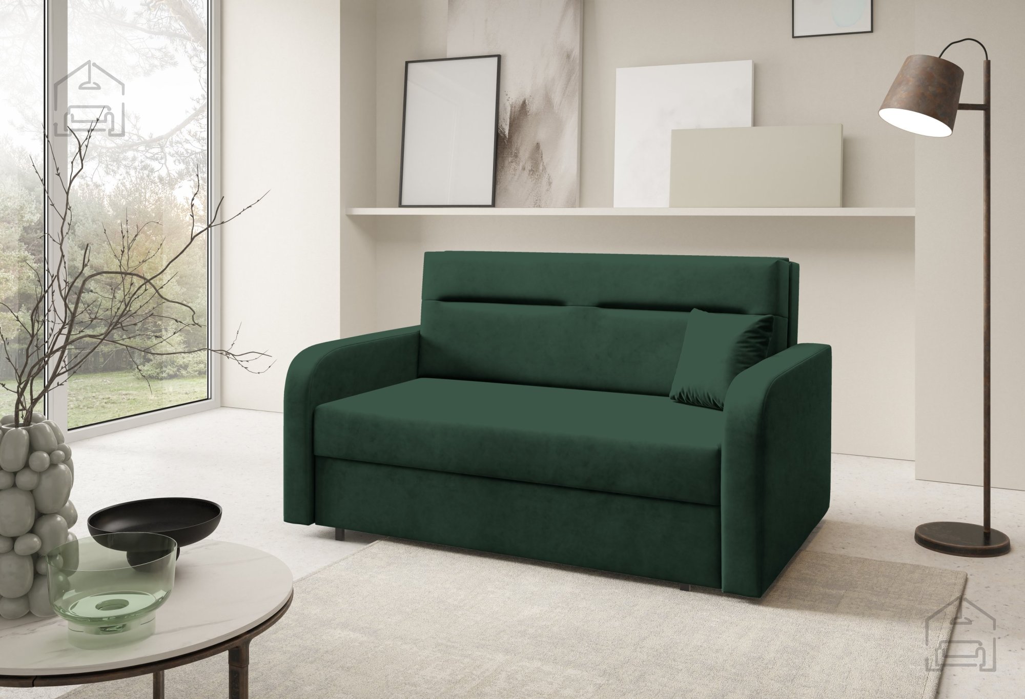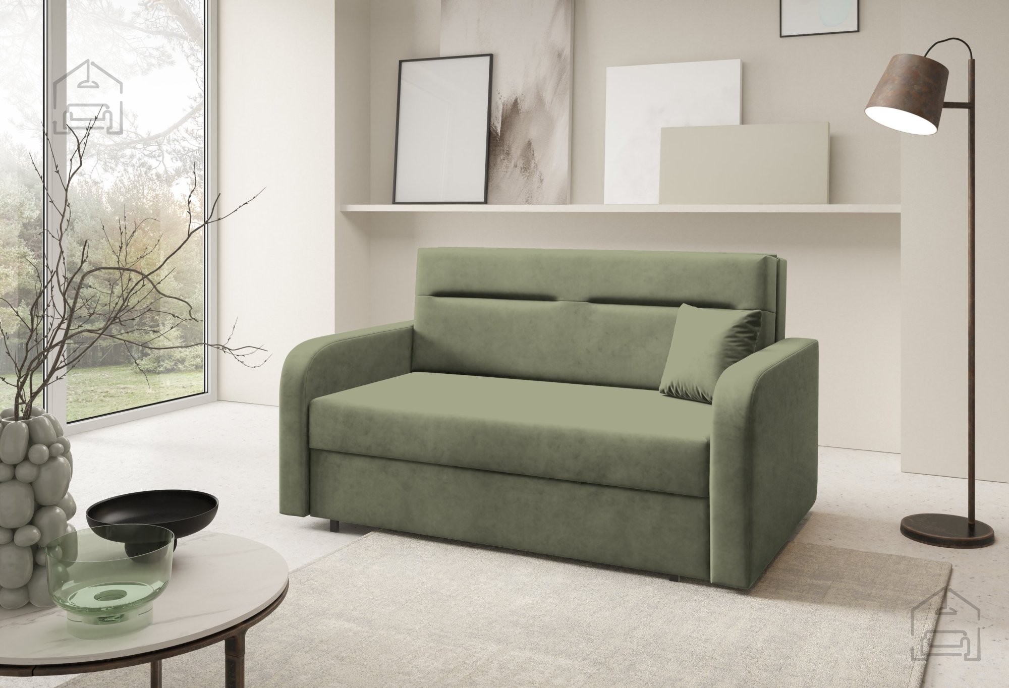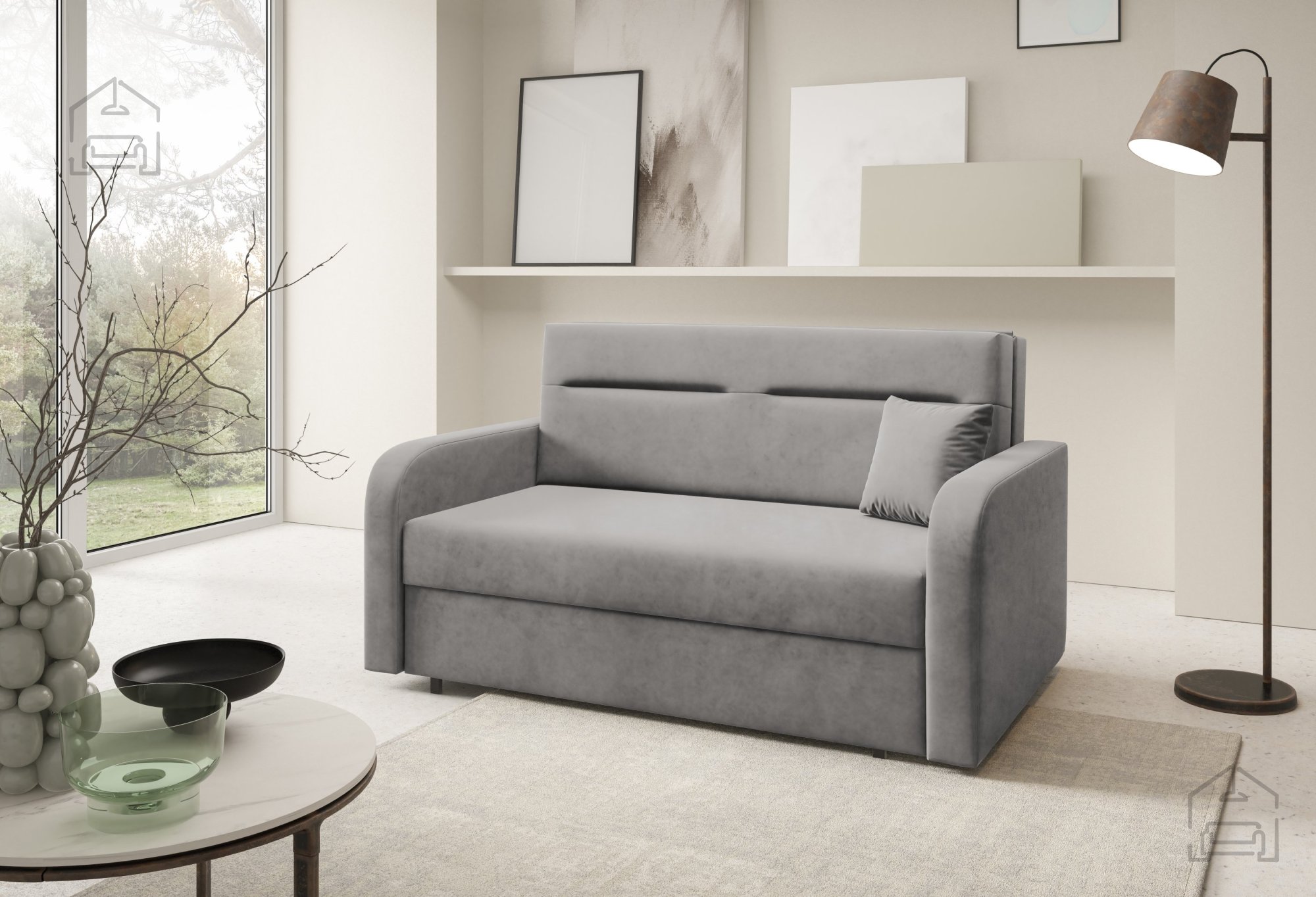 Das Schlafsofa Girona III der Marke PKMebel vereint Komfort, Funktionalität und modernes Design, wodurch es eine ausgezeichnete Wahl für kleinere Wohnräume, Kinderzimmer oder Gästeecken ist. Mit seinen Abmessungen von 155x97x85 cm bietet es tagsüber bequemes Sitzen und lässt sich leicht in ein Bett für die Nacht verwandeln. Der Teleskop-Mechanismus ermöglicht eine einfache und schnelle Umwandlung des Zweisitzers in ein Bett, was besonders praktisch in Wohnungen ist, in denen jeder Zentimeter Platz zählt.