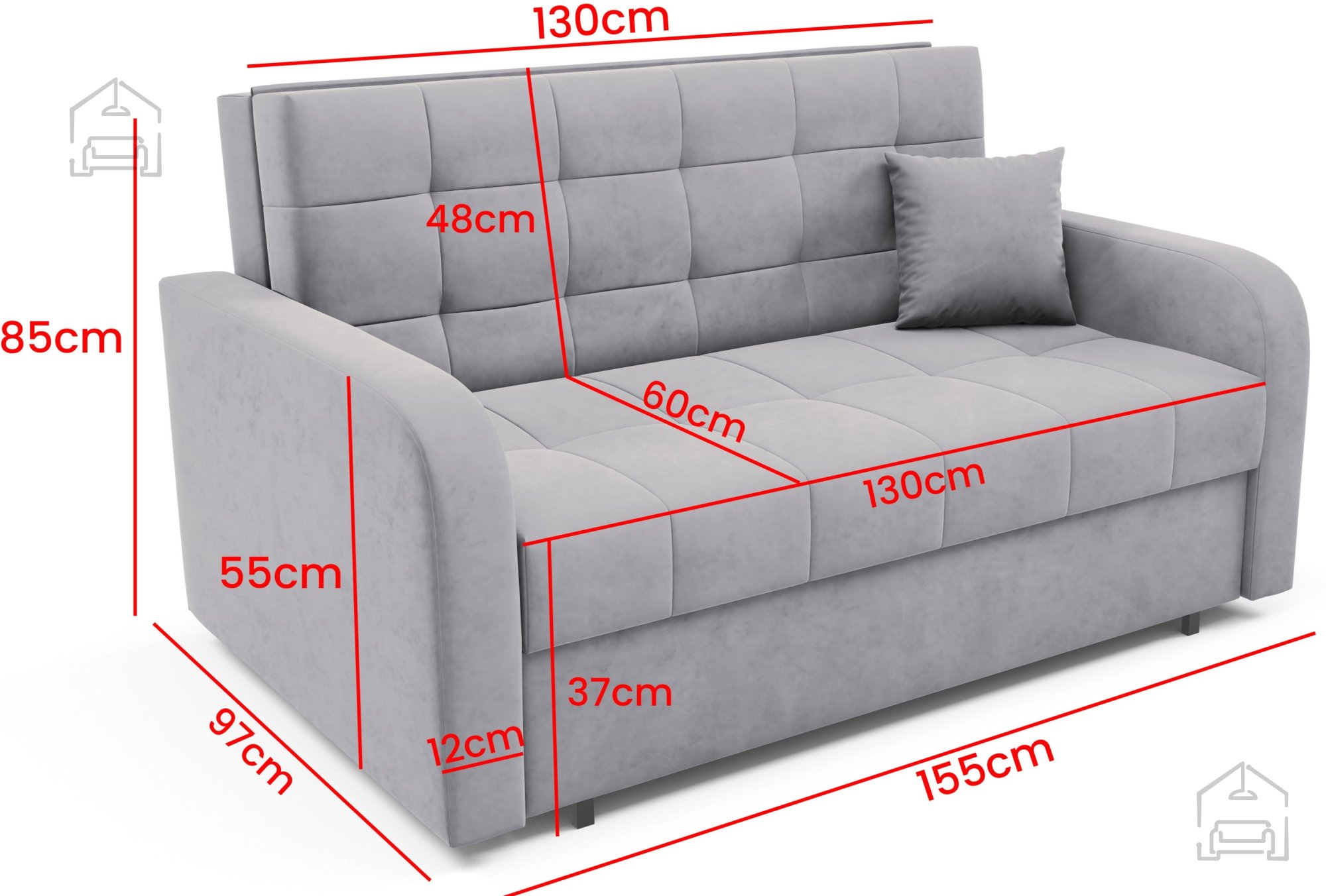 Mit den Maßen 155x97x85 cm bewahrt das Schlafsofa Haven III ein Gleichgewicht zwischen Kompaktheit und Geräumigkeit. Sein Design ermöglicht bequemes Sitzen für drei Personen und verwandelt sich in wenigen Augenblicken in ein Bett für zwei Personen. Dank der Liegefläche von 130x196 cm bietet es ausreichend Platz für erholsamen Schlaf, was es ideal für den täglichen Gebrauch oder gelegentliche Übernachtungen macht.