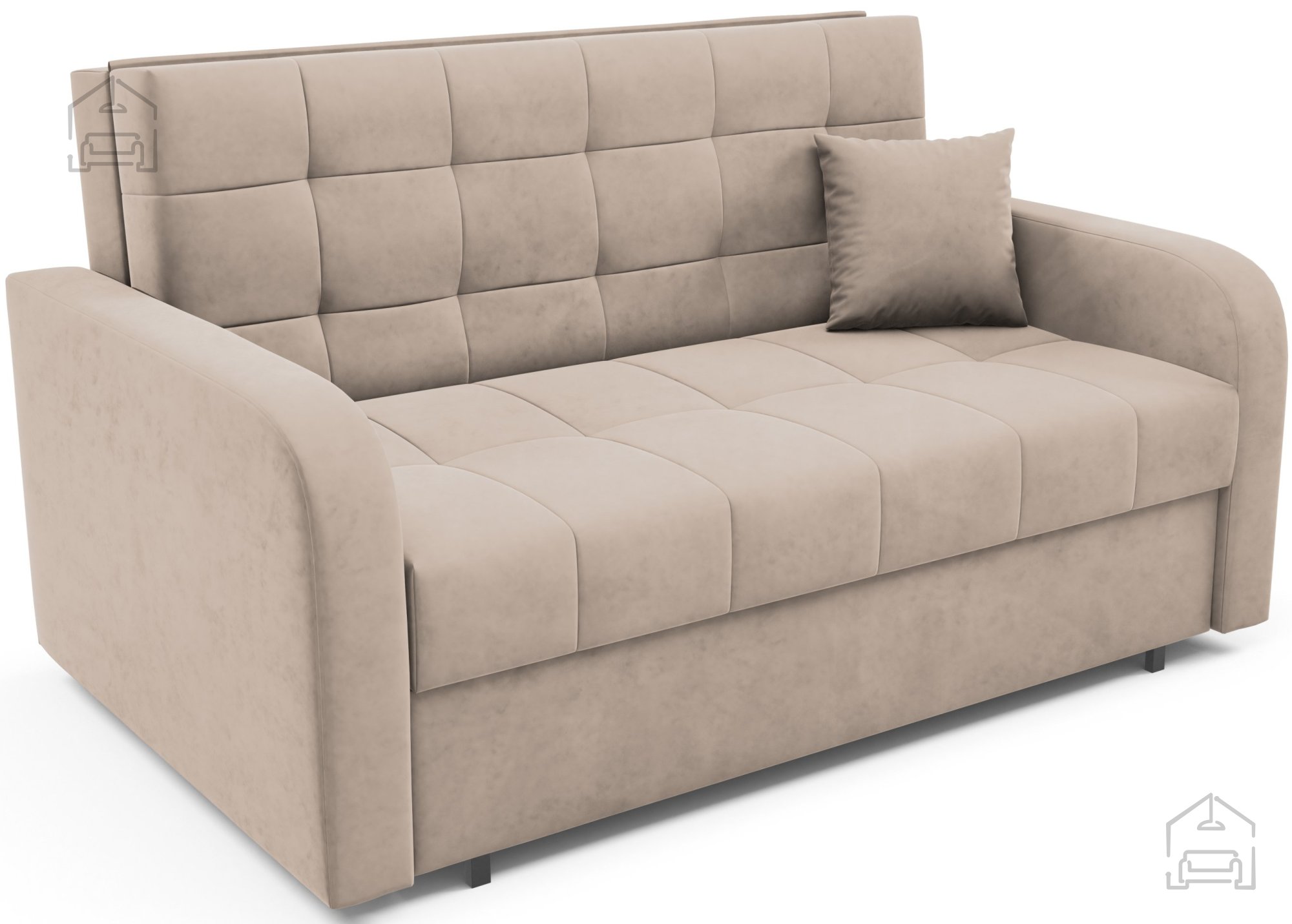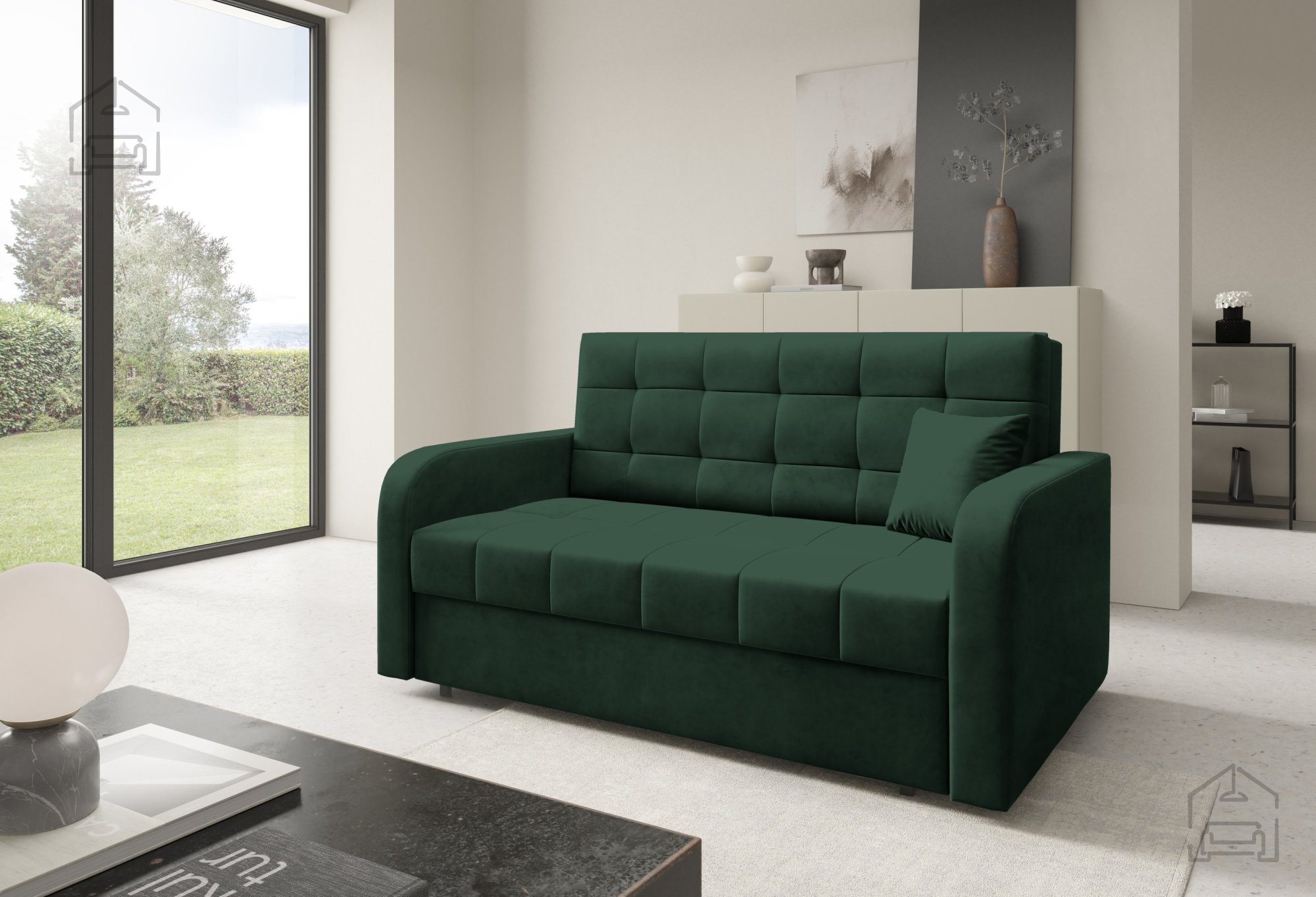 Der Rahmen des Sofas besteht aus hochwertigem Holz, was Stabilität und Langlebigkeit gewährleistet. Der Sitzbereich wird durch Schaumstoff ergänzt, der für Komfort und ergonomische Unterstützung beim Sitzen und Liegen sorgt. Die Kombination aus Holz und Schaumstoff schafft eine ausgewogene Struktur, die sich nicht schnell verformt und ihre Form über Jahre hinweg beibehält.