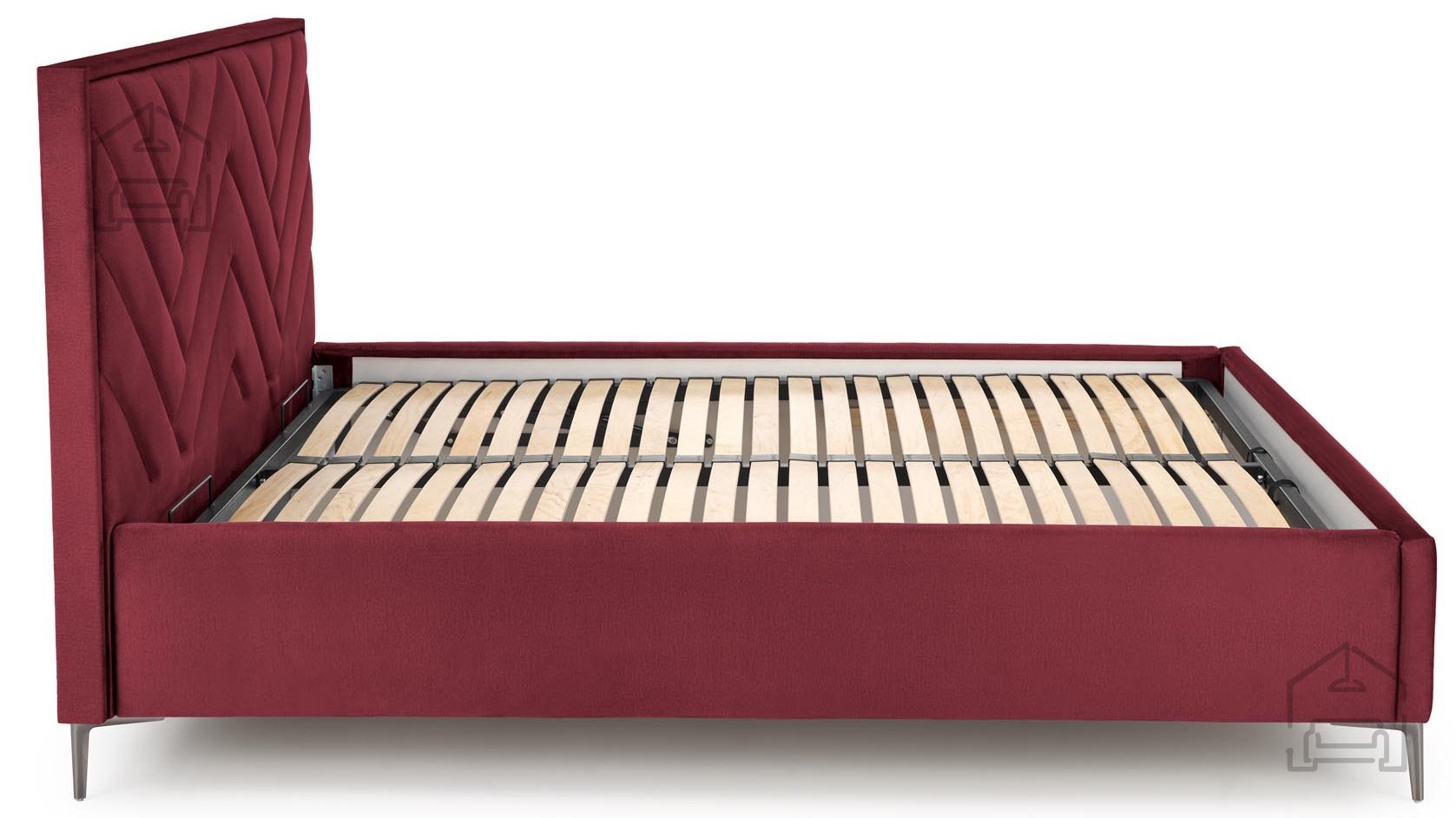 Das Bettgestell ist mit einem weichen Samtstoff bezogen, der dem Raum ein Gefühl von Wärme und Luxus verleiht. Der Bordeaux-Ton Monolith 59 bringt einen raffinierten Akzent, der gut zu verschiedenen Farbschemata von Schlafzimmern passt. Der Rahmen aus Spanplatte sorgt für Stabilität und Langlebigkeit und bewahrt gleichzeitig die angenehme Leichtigkeit der Konstruktion. Die Samtoberfläche ist angenehm zu berühren und gleichzeitig pflegeleicht, was dem Bett einen langfristigen ästhetischen Wert verleiht.