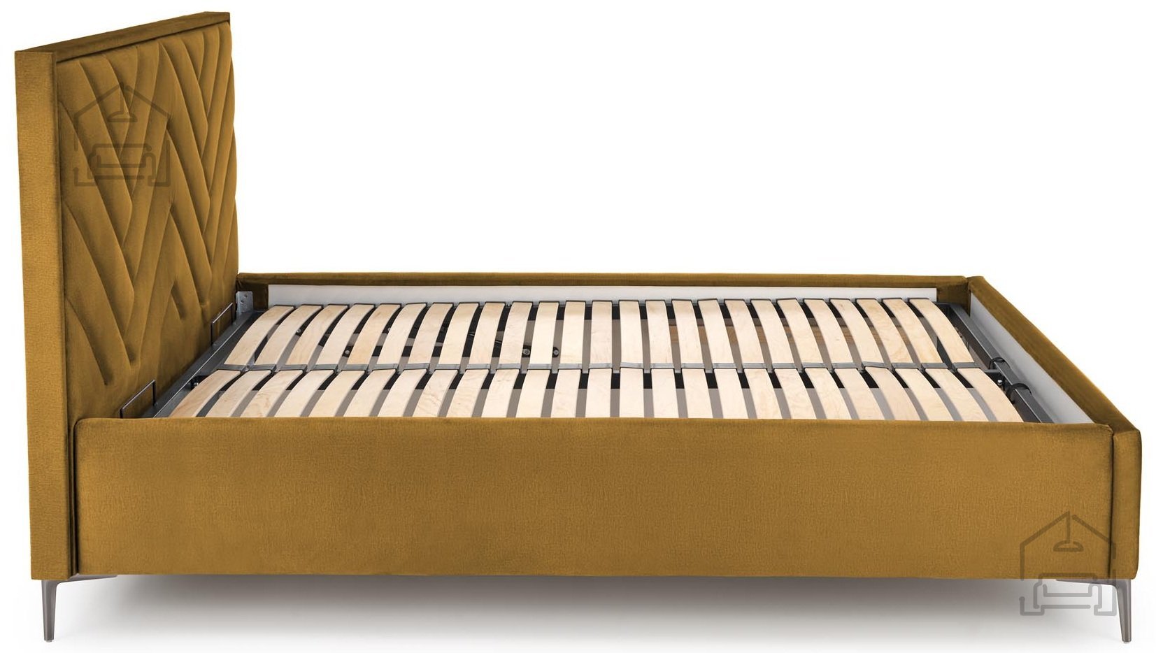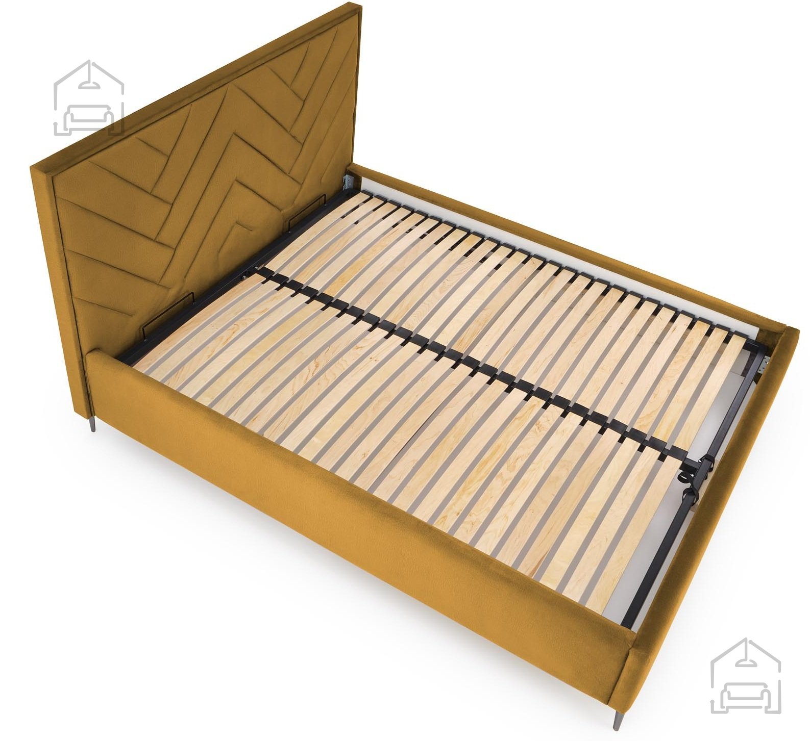 Die Basis des Kopfteils besteht aus strapazierfähiger Spanplatte, die Stabilität und Langlebigkeit der Konstruktion gewährleistet. Die Oberfläche ist mit weichem Samtstoff bezogen, der das Erscheinungsbild des Schlafzimmers angenehm ergänzt und bequemes Anlehnen beim Lesen oder Ausruhen ermöglicht. Der Farbton Senf Monolith 48 ist modern, warm und harmoniert hervorragend mit neutralen oder kontrastierenden Farbkombinationen im Raum. Eine solche Farbe verleiht dem Interieur ein Gefühl von Behaglichkeit und bewahrt zugleich Eleganz und ein raffiniertes Aussehen.