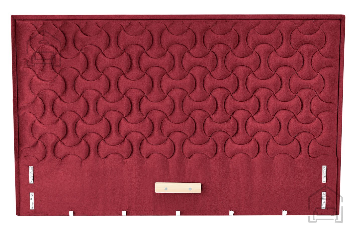 Der bordeauxfarbene Samt verleiht dem Kopfteil einen markanten Charakter. Der warme Farbton schafft ein Gefühl von Tiefe, während der Samt mit seiner Struktur das Licht einfängt und sanft reflektiert, was dem Raum ein luxuriöses Aussehen verleiht. Ein solches Element kann zum Mittelpunkt des Schlafzimmers werden und gleichzeitig eine bequeme Stütze beim Lesen oder Entspannen bieten. Im Gegensatz zu den kalten, harten Oberflächen klassischer Kopfteile bietet die Samtpolsterung angenehme Weichheit und Wärme, die zum Wohlbefinden beiträgt.