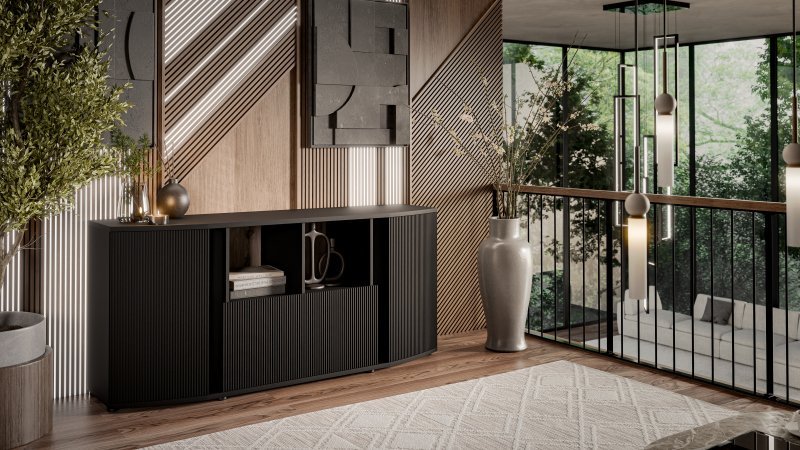Die Kommode Michelle ist nicht nur ästhetisch anspruchsvoll, sondern auch raumeffizient. Mit einer Breite von 178 cm bietet sie ausreichend Platz zur Aufbewahrung verschiedener Gegenstände – von Textilien bis hin zu Dokumenten und dekorativen Accessoires. Die Tiefe von 47 cm ermöglicht eine optimale Innenaufteilung, während die Höhe von 82 cm dafür sorgt, dass die Oberfläche auch als Ablagefläche oder Dekorationsbereich genutzt werden kann. Die Innenaufteilung ist so gestaltet, dass sie einen einfachen Zugriff und gute Übersicht ermöglicht, was zur besseren Ordnung im Raum beiträgt.