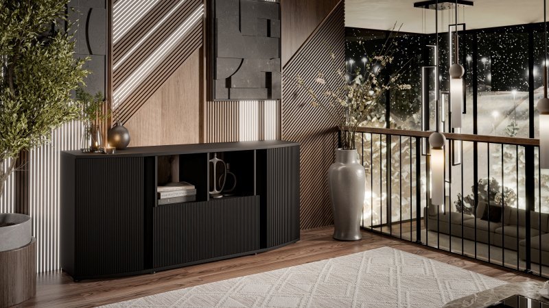Die Kommode Michelle – Halmar ist ein durchdacht gestaltetes Möbelstück, das durch die Kombination von laminierter Spanplatte und MDF-Platte ein perfektes Gleichgewicht zwischen Ästhetik und Funktionalität schafft. Das minimalistische Design ohne Griffe, die stabile Konstruktion und die elegante Farbkombination Schwarz/Eiche Viking ermöglichen es, die Kommode problemlos in verschiedene Räume zu integrieren – von Wohnzimmern über Schlafzimmer bis hin zu Fluren. Ihr Design spricht für Modernität, hochwertige Ausführung und Zuverlässigkeit, die Halmar konsequent in seinen Produkten umsetzt. Michelle ist mehr als nur ein Möbelstück – sie ist eine Verbindung von Eleganz, Ordnung und dauerhafter Zweckmäßigkeit.
