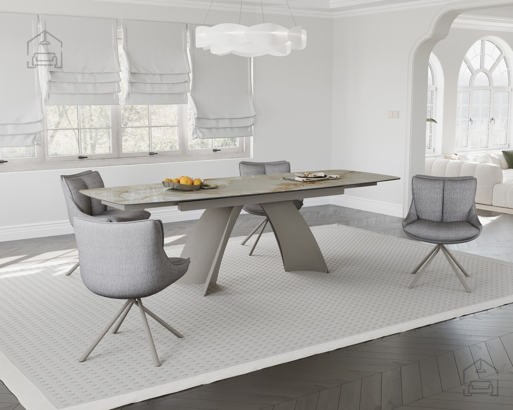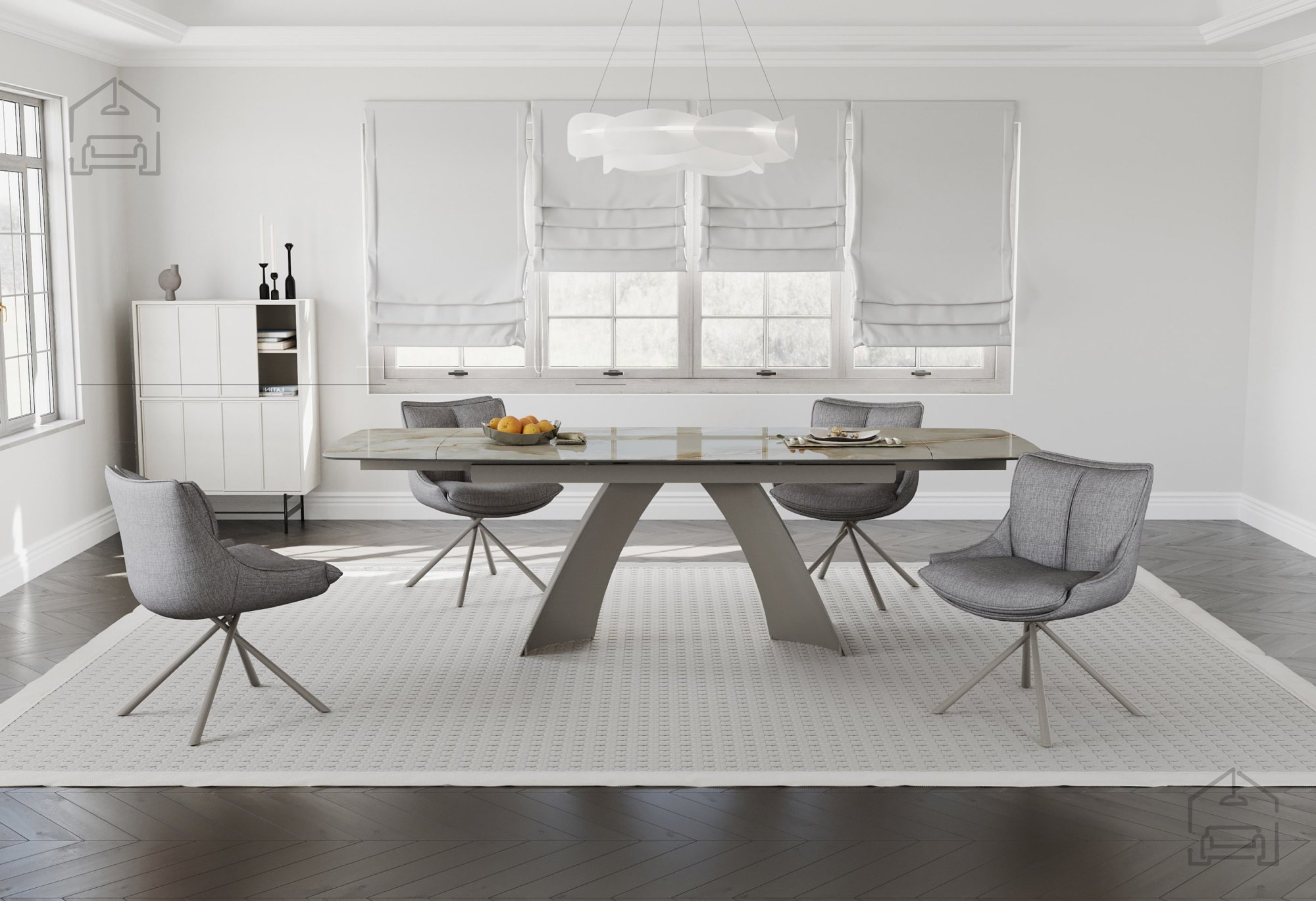 Der ausziehbare Tisch Tokyo ist so konzipiert, dass er Funktionalität und ästhetischen Ausdruck verbindet. Seine Oberfläche in Marmoroptik wirkt edel und ist gleichzeitig leicht zu reinigen – ein feuchtes Tuch und ein mildes Reinigungsmittel genügen. Durch die Kombination von Keramik und Glas ist er beständig gegen Kratzer, Flecken und Temperatureinflüsse, sodass das Erscheinungsbild auch nach Jahren unverändert bleibt. Der Tisch lässt sich hervorragend mit verschiedenen Stuhltypen kombinieren, sei es aus Metall, Holz oder gepolstert, und passt gut in Esszimmer, offene Wohnräume oder moderne Küchen.