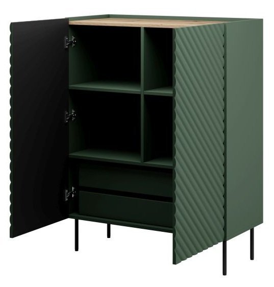Dunkelgrüne Eleganz trifft auf funktionales Design: die hohe Kommode Onda 2D – Halmar.