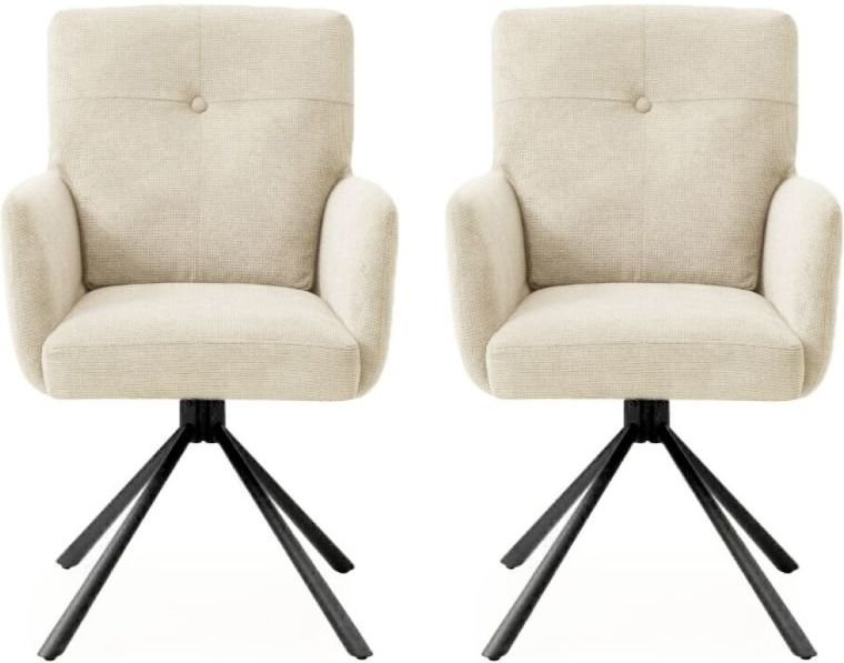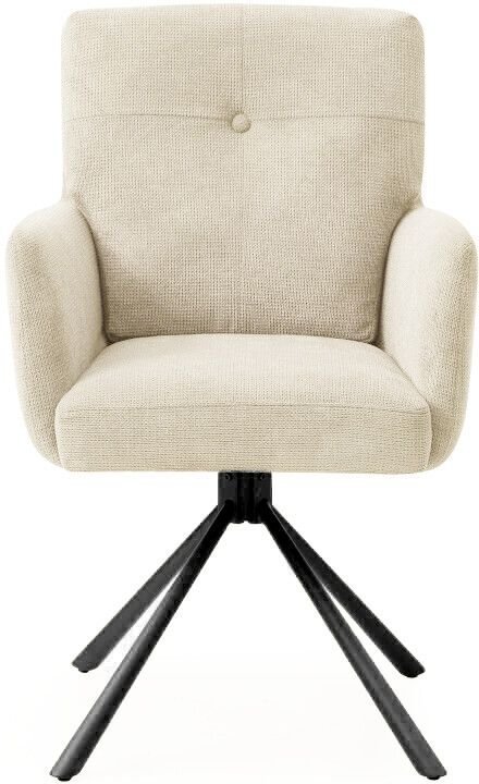 Der Bezug aus weichem Stoff in einem warmen Beigeton verleiht dem Raum eine behagliche Note und lässt sich leicht mit anderen Materialien im Esszimmer kombinieren. Der Stoff fühlt sich angenehm an und ist zugleich robust genug für den täglichen Gebrauch. Der gesamte Stuhl, inklusive Armlehnen, ist einheitlich gepolstert, was ihm ein harmonisches und elegantes Erscheinungsbild verleiht. Dank der neutralen Farbe lässt sich der Stuhl mühelos mit verschiedenen Tisch- und Möbelvarianten kombinieren.