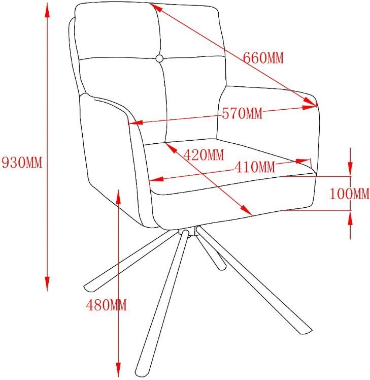 Mit den Maßen 57×66×88 cm bietet der Stuhl eine bequeme Sitzfläche, ohne zu viel Platz zu beanspruchen. Die Proportionen sind so abgestimmt, dass er gut zu den meisten gängigen Esstischen passt. Durch seine Höhe und Breite ermöglicht er eine natürliche Sitzhaltung, und die Armlehnen erhöhen den Komfort zusätzlich.