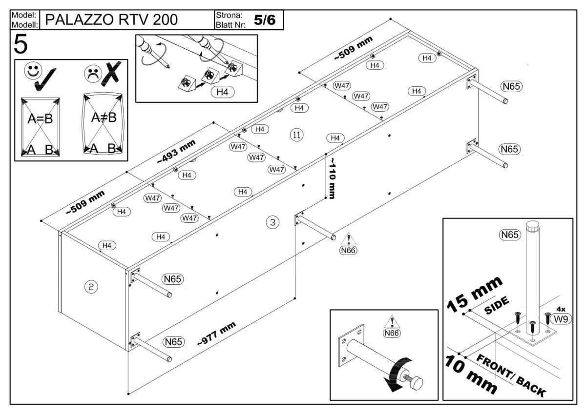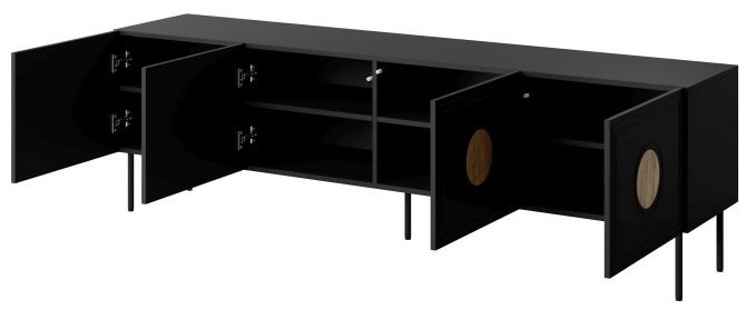 Die TV‑Kommode Palazzo ist mit einem modernen PUSH‑CLICK‑System ausgestattet, das das Öffnen der Türen ohne Griffe ermöglicht. Ein leichter Druck auf die Front genügt, und die Türen öffnen sich leise und sanft. Dieses System erhält die klaren Linien der Front und unterstreicht das minimalistische Design. Alle vier Fächer sind großzügig bemessen und bieten reichlich Platz für DVDs, Spielkonsolen, Fernbedienungen oder andere Utensilien, die Sie griffbereit, aber dennoch ordentlich verstaut haben möchten.