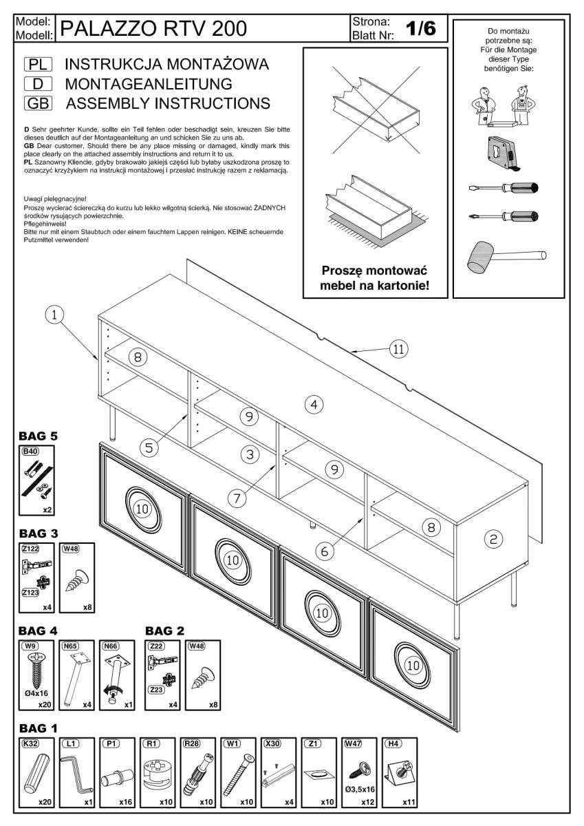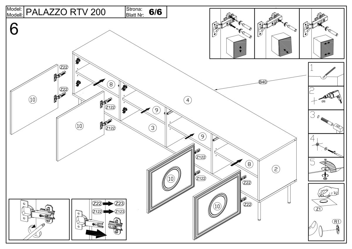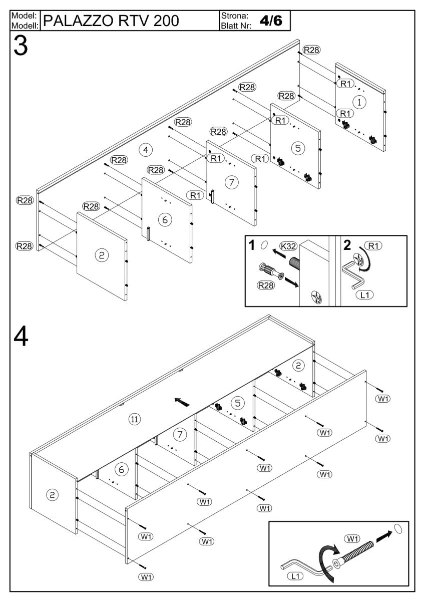 Mat laminierte Platte 16 mm: TV‑Kommode Palazzo 200 cm 4D – Halmar.