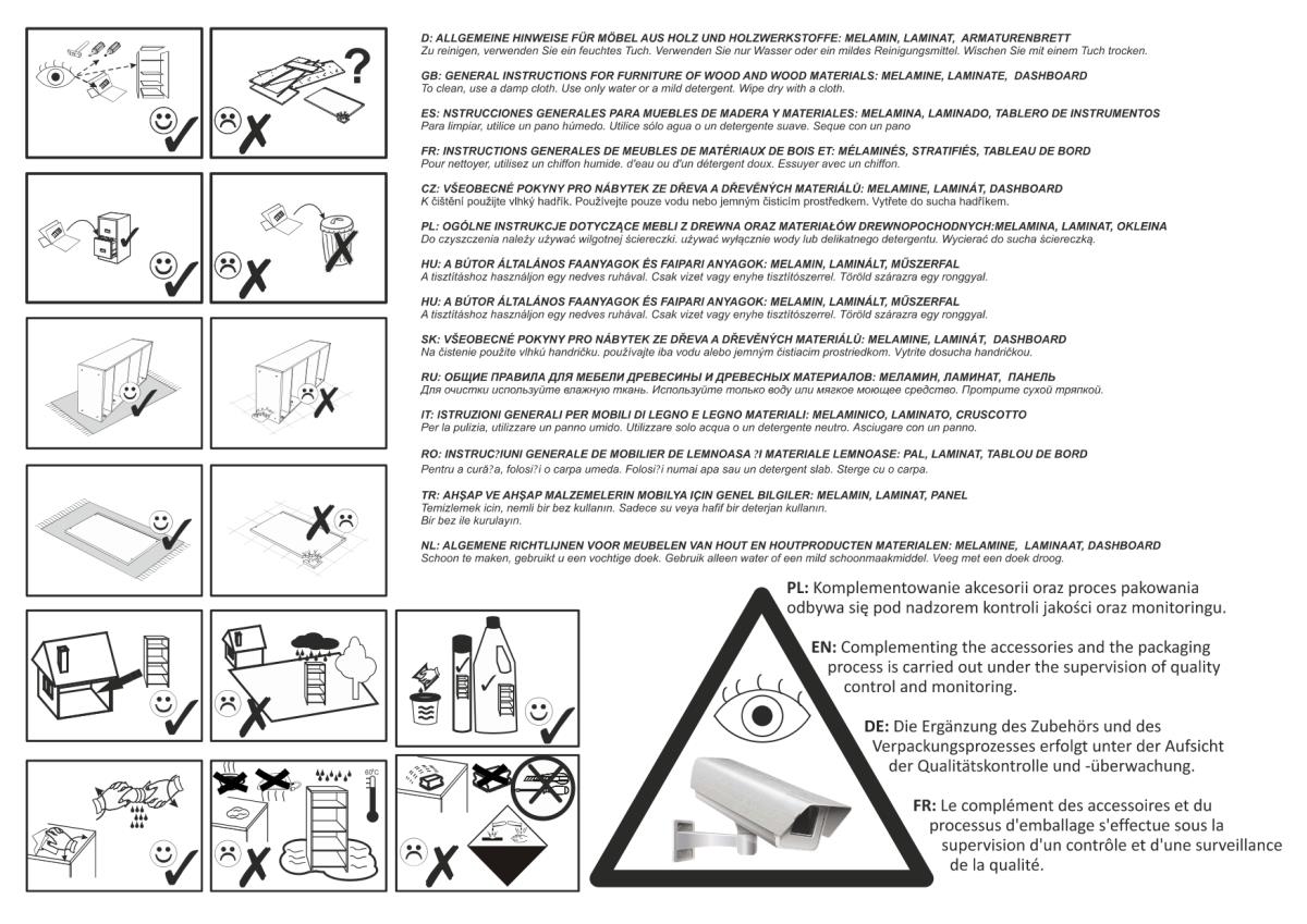 Der Korpus der Kommode besteht aus einer matten, laminierten Platte mit 16 mm Stärke, die Stabilität und Widerstandsfähigkeit im Alltag gewährleistet. Die Fronten sind aus 16 mm starken MDF‑Platten gefertigt, was zusätzliche Robustheit und eine gleichmäßig glatte Oberfläche bietet. Schwarze Metallfüße mit einer Höhe von 20 cm geben dem Möbelstück sicheren Halt und erleichtern gleichzeitig die Reinigung unter der Kommode. Dank der Fußhöhe kann sogar ein Saugroboter problemlos darunter fahren – praktisch für den täglichen Gebrauch.