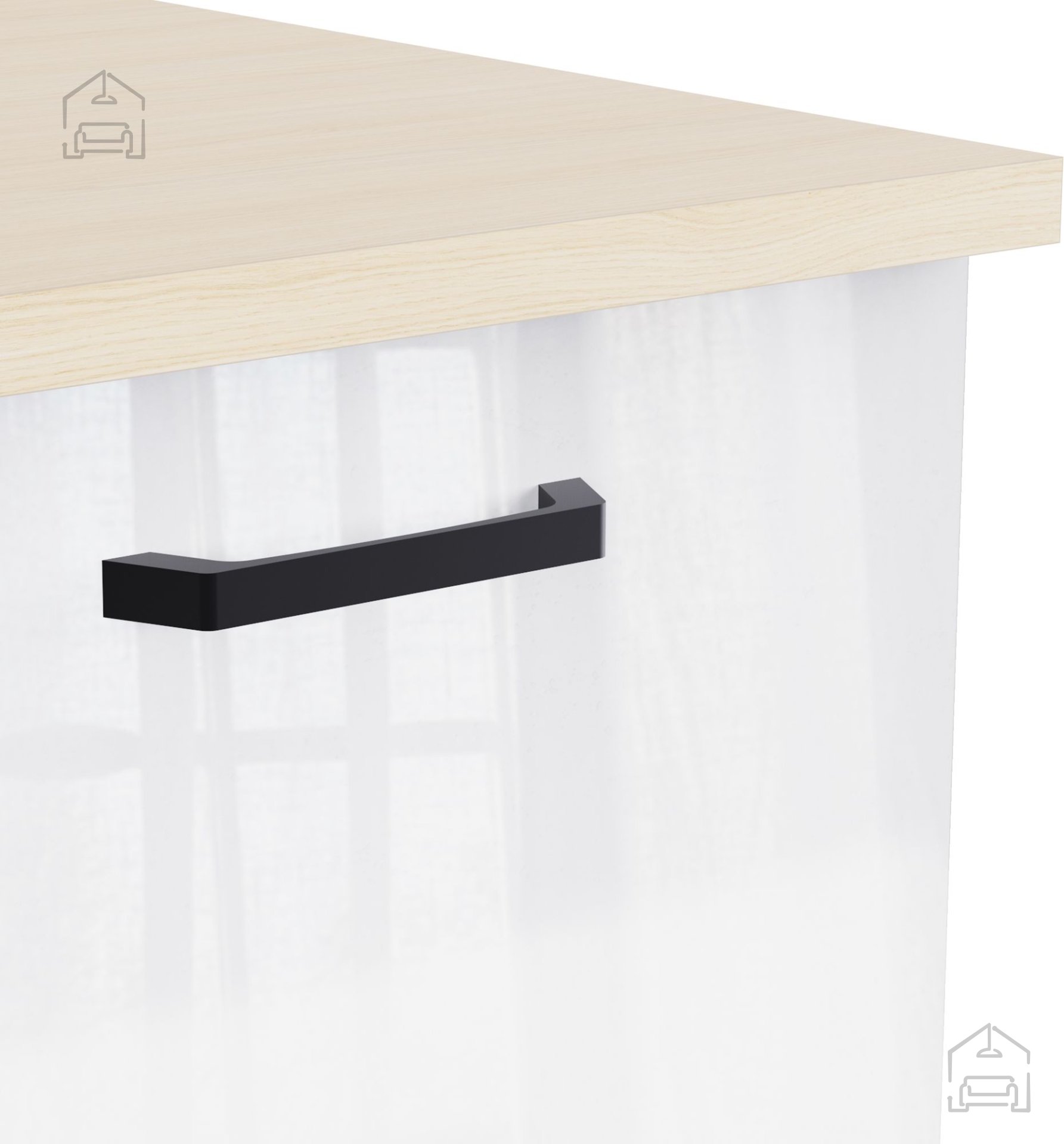 Die Türen sind mit schwarzen Aluminiumgriffen ausgestattet, die einen eleganten Kontrast zur weißen Hochglanzoberfläche bilden. Neben der ansprechenden Optik bieten sie auch einen angenehmen Griff und einfaches Öffnen. Eingebaute Dämpfer sorgen für ein leises und sanftes Schließen, verhindern das Zuschlagen der Türen, reduzieren Geräusche und verlängern die Lebensdauer der Beschläge. So wird die Nutzung besonders komfortabel und angenehm leise.