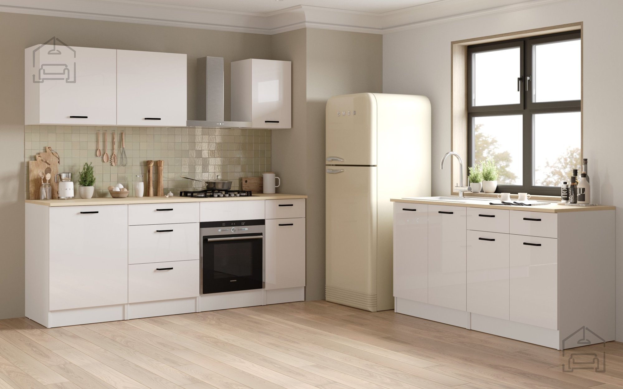 Der Hochschrank Bianco 11 ist ideal für alle, die Wert auf Ordnung und ein harmonisches Erscheinungsbild in ihrem Zuhause legen. Das hochglänzende Weiß reflektiert das Licht und lässt den Raum größer wirken – perfekt für kleinere Küchen oder Räume mit wenig Tageslicht. Sein schlichtes, geometrisches Design ohne überflüssige Details macht ihn vielseitig einsetzbar: Er kann sowohl einzeln stehen als auch Teil einer größeren Kücheneinrichtung sein.