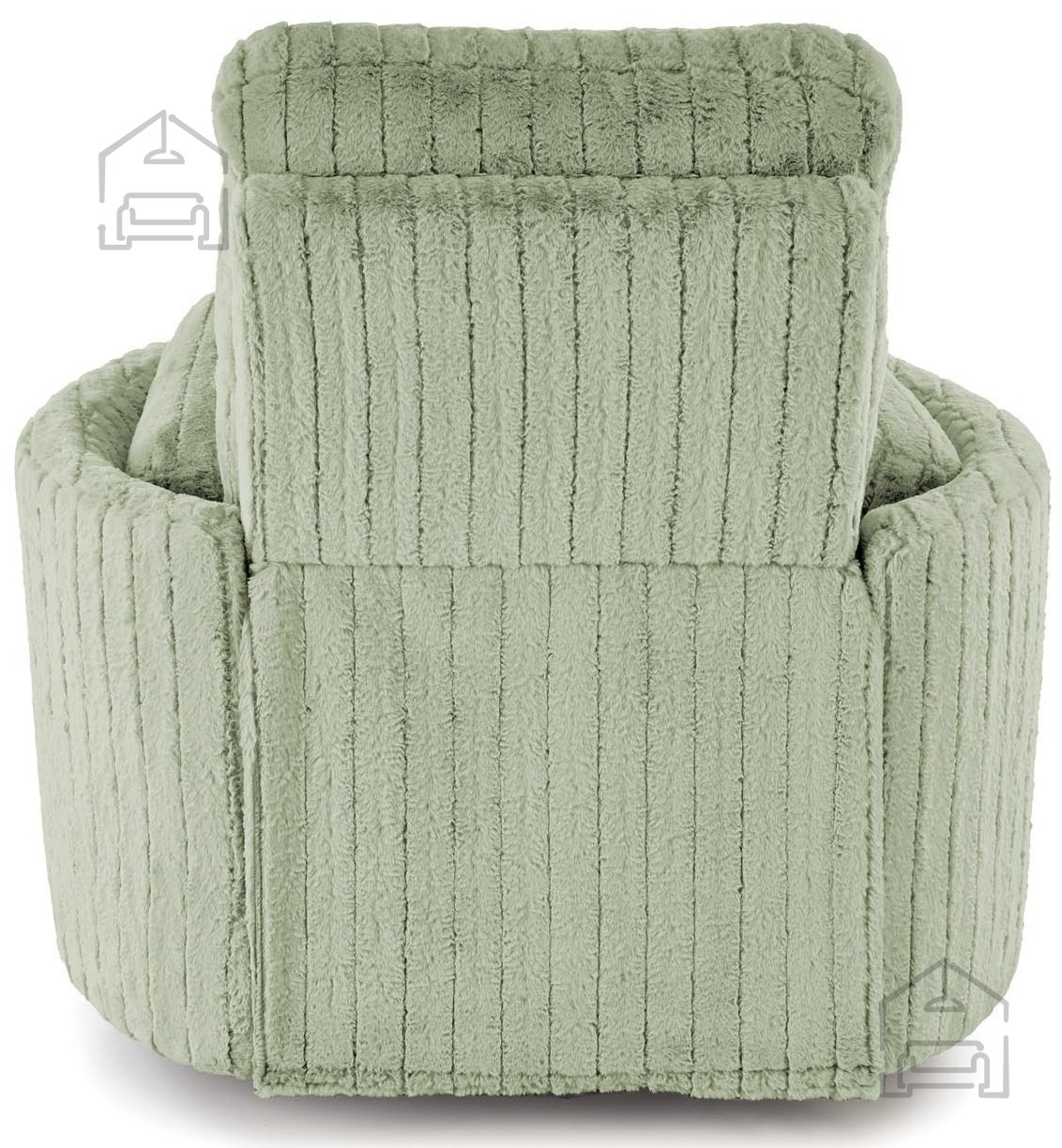 Der Sessel ist so gestaltet, dass er die natürliche Körperhaltung unterstützt. Die hohe Rückenlehne bietet angenehme Unterstützung für Rücken und Nacken, während die breiten Armlehnen für zusätzliche Entspannung sorgen. Der weiche Stoff und die ausgewogene Polsterung machen das Sitzen auch über längere Zeit hinweg bequem. Die Schaukelfunktion wirkt beruhigend und hilft, nach einem anstrengenden Tag abzuschalten.
