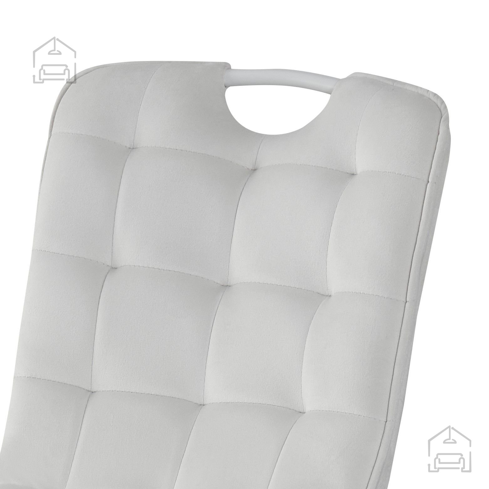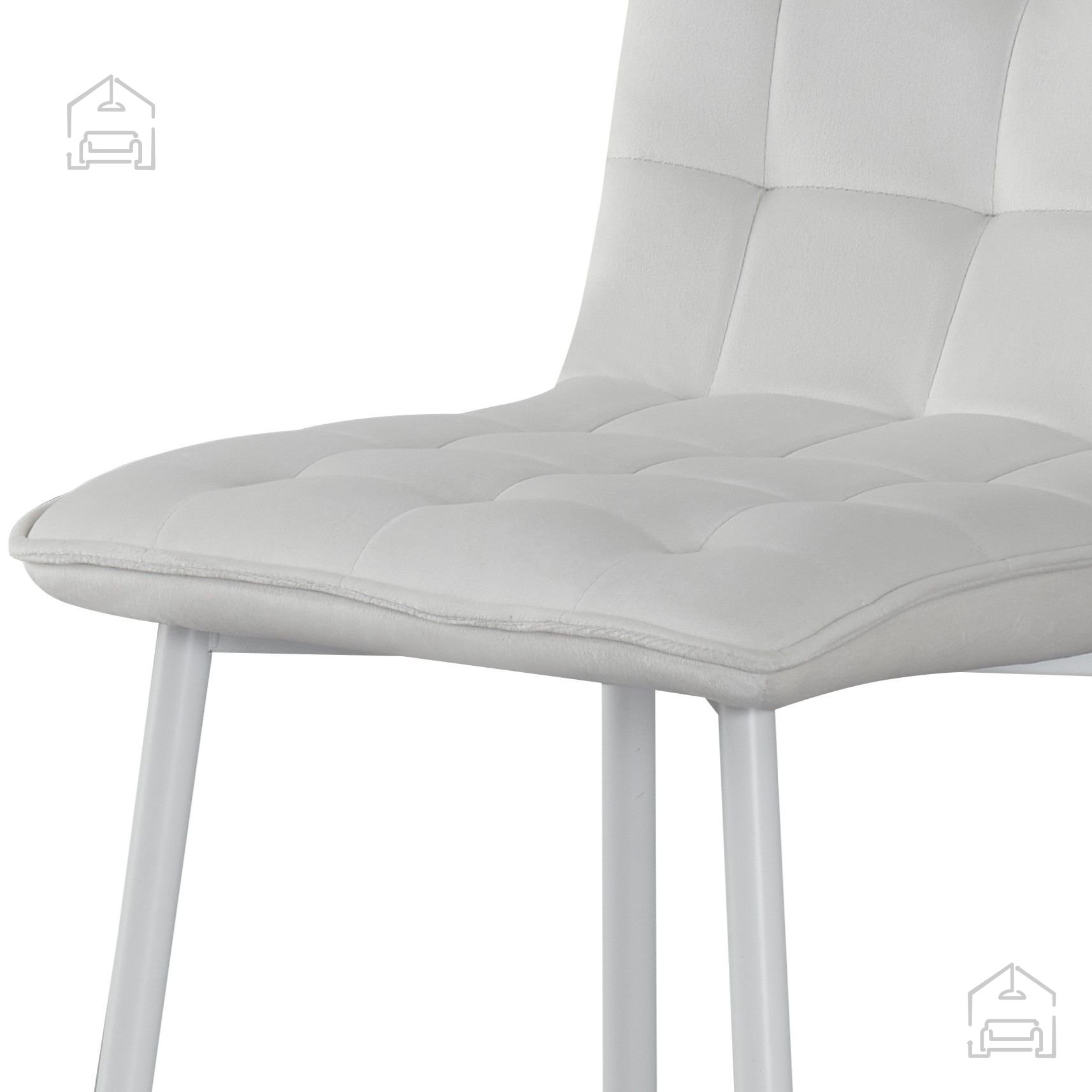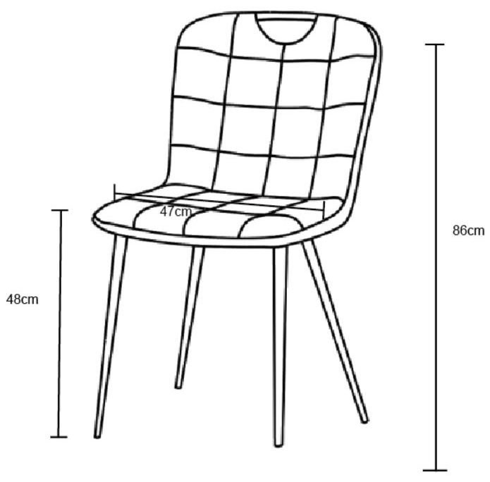 Sitzfläche und Rückenlehne sind mit einem hochwertigen Stoff gepolstert, der sich angenehm anfühlt und gleichzeitig strapazierfähig genug für den täglichen Gebrauch ist. Die samtige Oberfläche vermittelt ein Gefühl von Wärme und Weichheit, während dekorative quadratische Nähte auf der Fläche einen dezenten, aber markanten Akzent setzen. Die Sitztiefe beträgt 41 cm und sorgt für ergonomische Unterstützung und entspanntes Sitzen beim Essen oder gemütlichen Beisammensein.