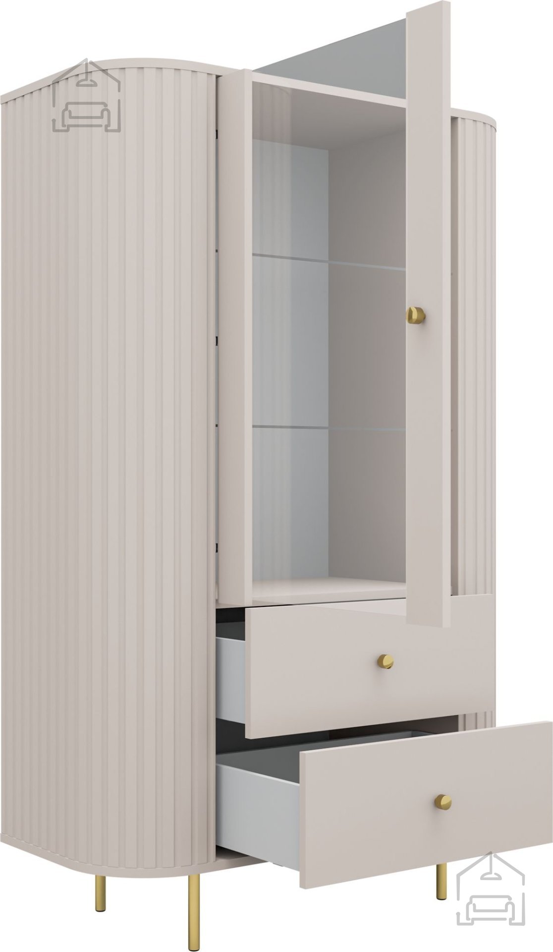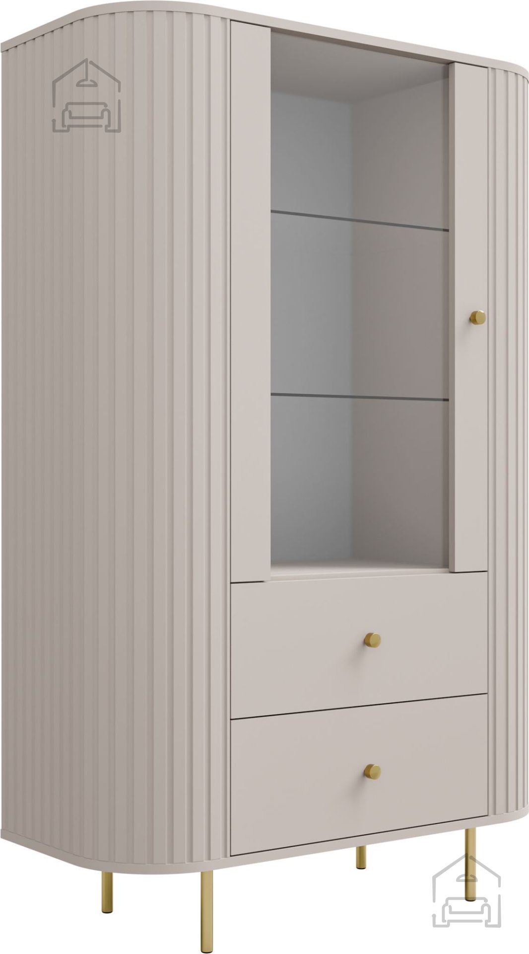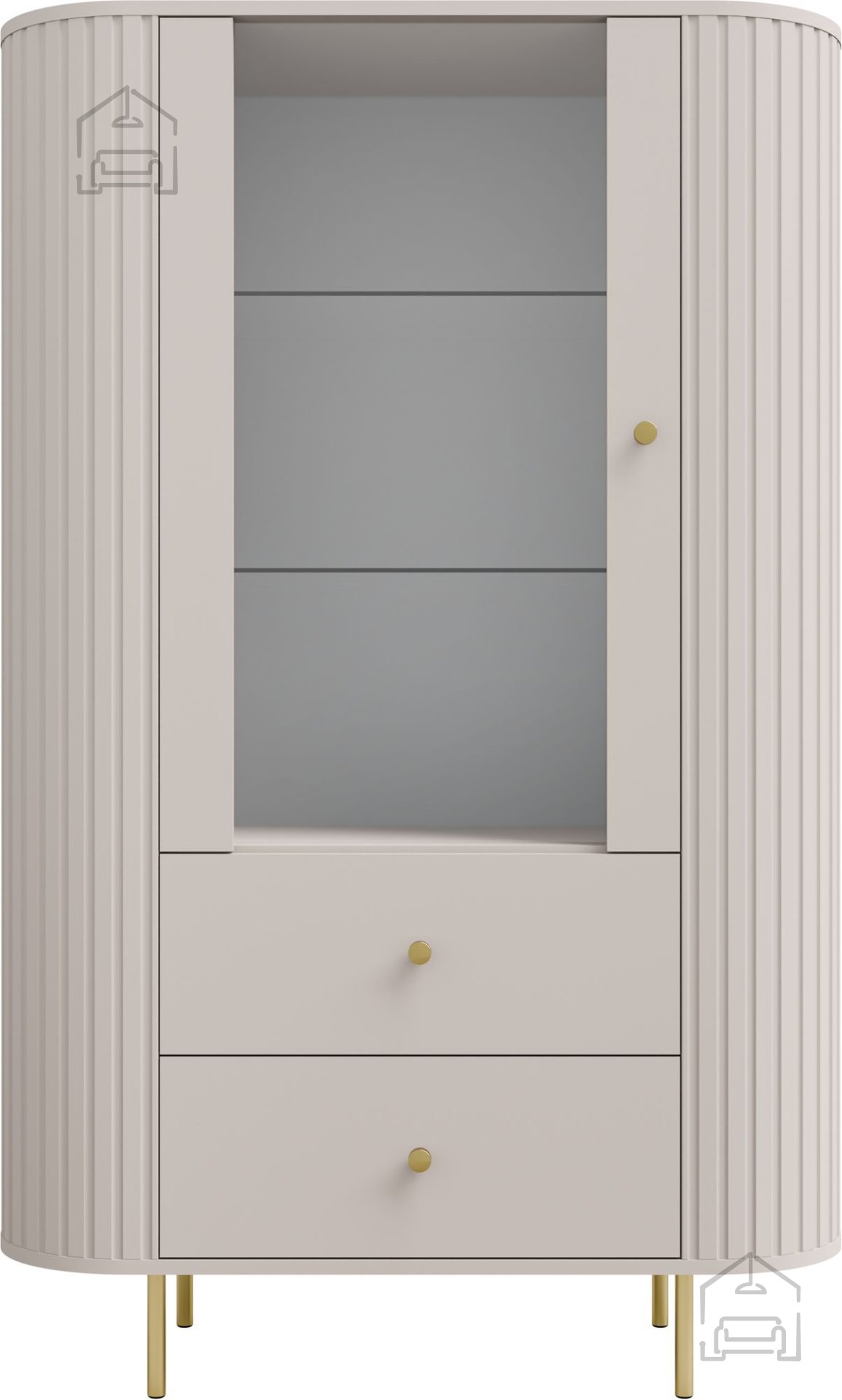 Die Vitrine 1F2S Ovalio in Sandbeige ist ideal für alle, die ihr Zuhause mit einem Möbelstück ausstatten möchten, das Schlichtheit und Eleganz vereint. Durch die neutrale Farbgestaltung lässt sie sich leicht mit verschiedenen Bodenbelägen, Wandfarben und Accessoires kombinieren. Im Esszimmer setzt sie Geschirr oder Gläser in Szene, im Wohnzimmer ergänzt sie Bücher oder Dekorationsobjekte. So entsteht ein harmonischer, aufgeräumter und heller Gesamteindruck.