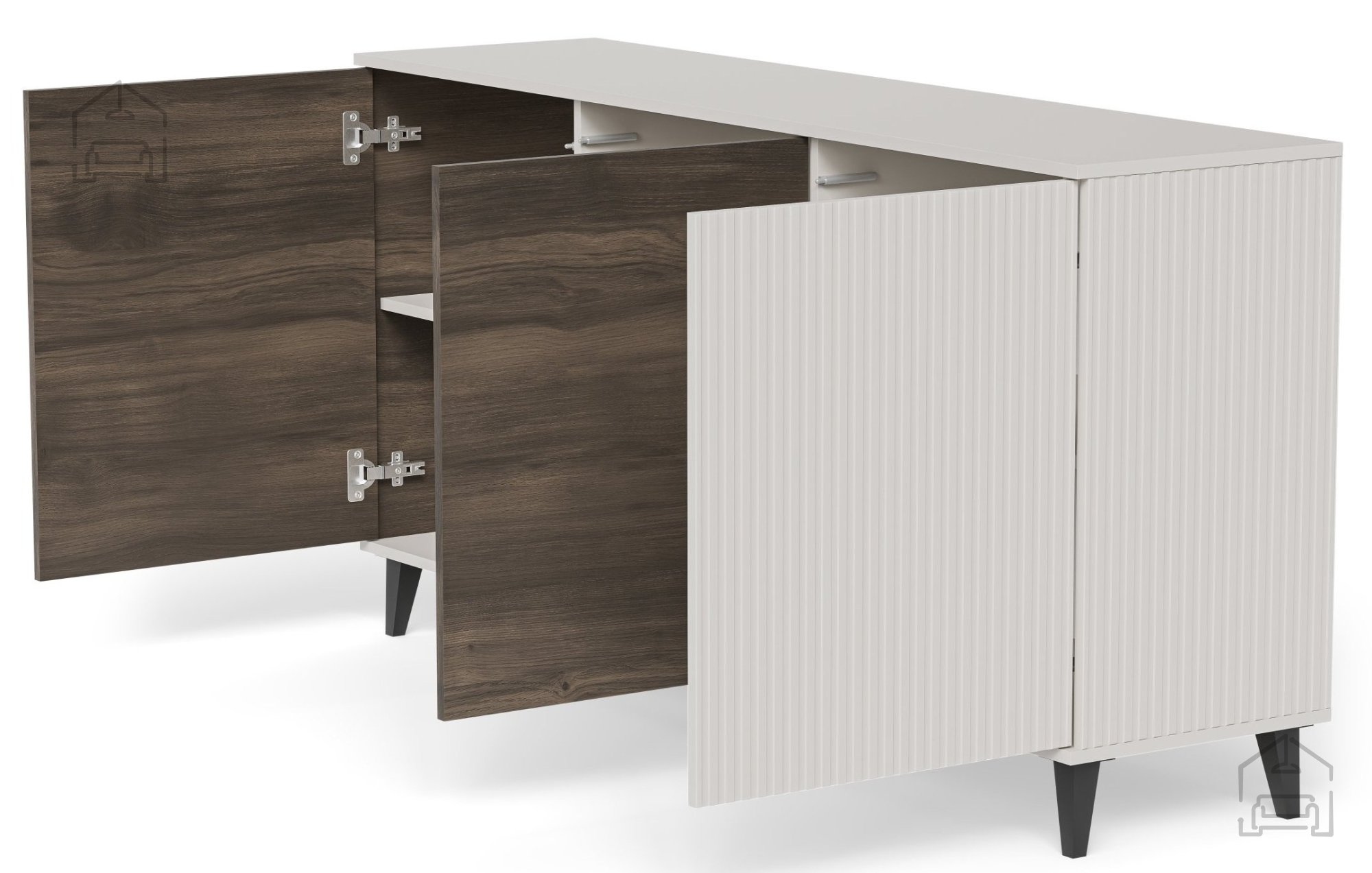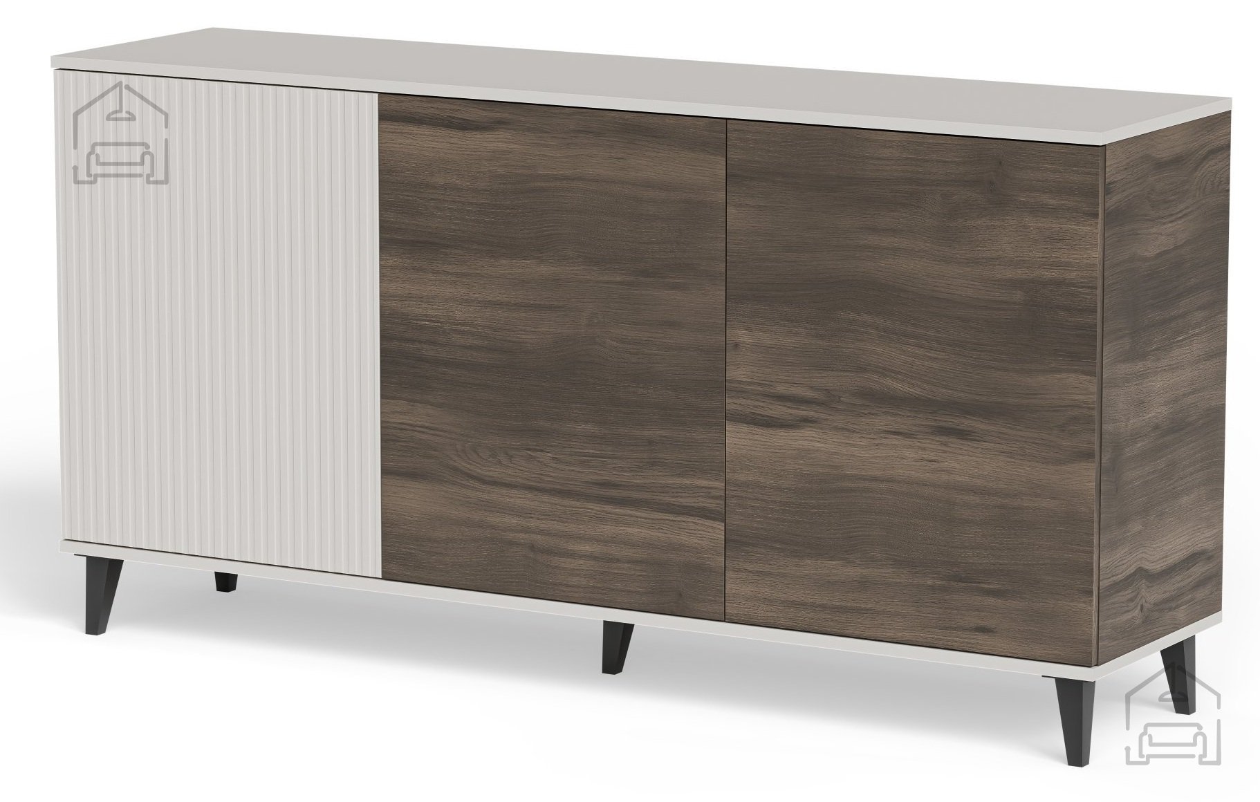 Die Maße von 160x40x82 cm bieten reichlich Stauraum, ohne dass die Kommode wuchtig wirkt. Dank der ausgewogenen Proportionen fügt sie sich sowohl in größere Wohnräume als auch in kleinere Bereiche gut ein. Im Inneren lassen sich Geschirr, Textilien oder Dokumente ordentlich verstauen, während die obere Fläche Platz für Dekorationen wie Lampen, Bilderrahmen oder Pflanzen bietet. Die Kommode Random 2 KM-1 ist somit nicht nur ein optisches Highlight, sondern auch ein funktionales Möbelstück, das hilft, Ordnung im Raum zu halten.